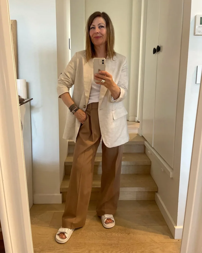 For a touch of contrast, introduce different textures. A silk camisole adds a glossy finish against the matte, organic feel of the linen. This mix screams quiet luxury.