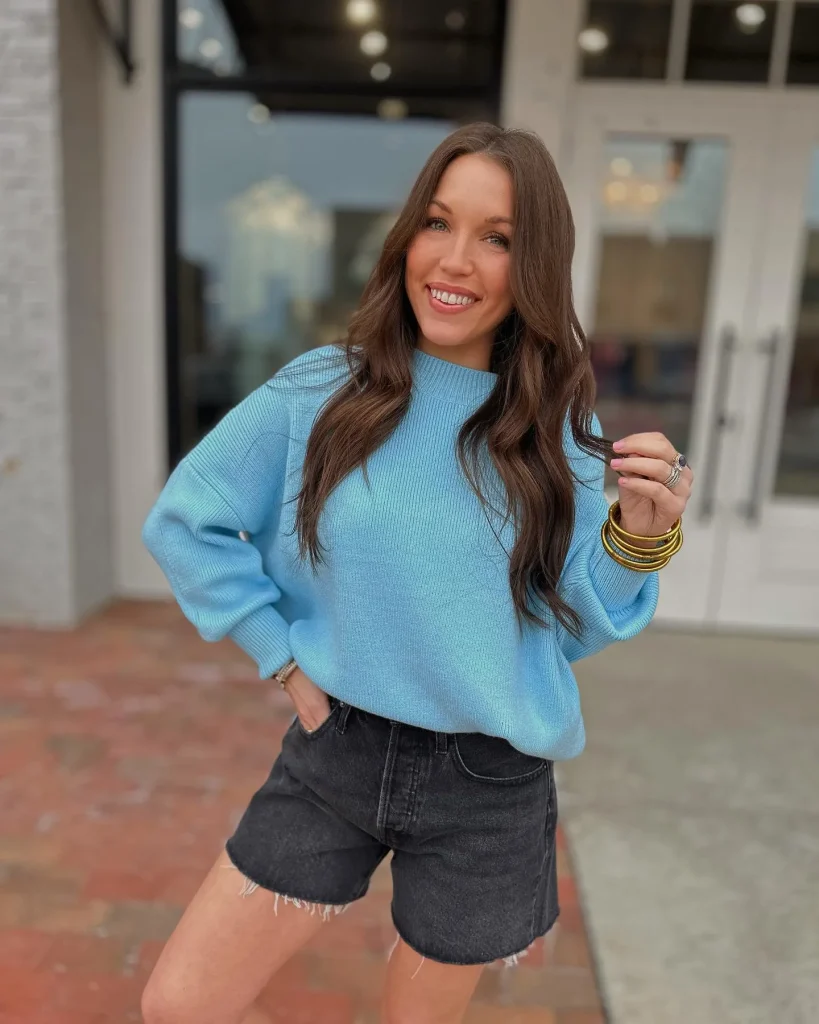 Pair your favorite denim shorts yes, you can still wear them! with a lightweight, slightly slouchy sweater.