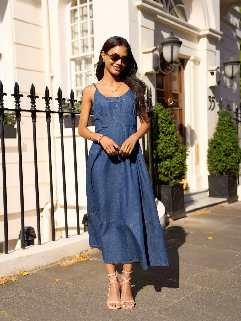 A denim dress might not immediately scream “Thanksgiving,” but a soft, stretchy denim midi or maxi dress can be incredibly comfortable and stylish.