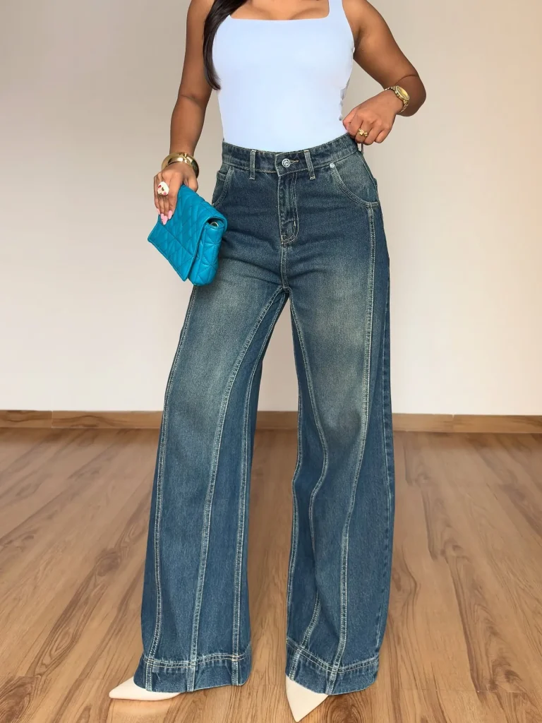 Pair it with dark-wash, high-waisted jeans with a comfortable amount of stretch (crucial!).
