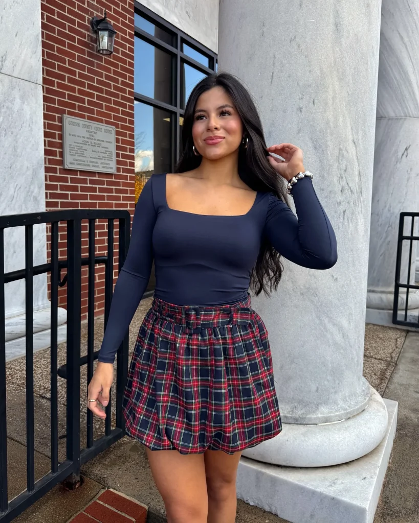 Think sophisticated plaid trousers or a chic plaid mini skirt.