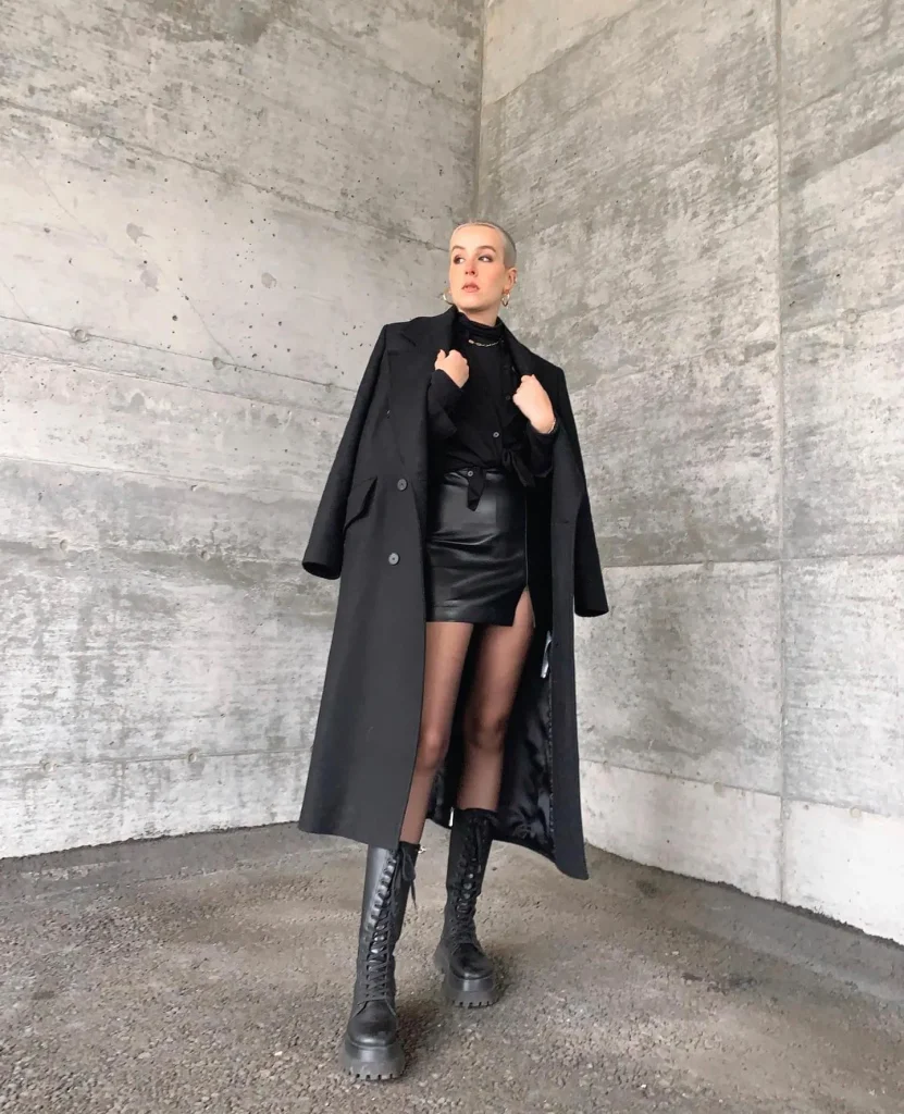 Combine black leggings or joggers with a black t-shirt and a black jacket or cardigan.