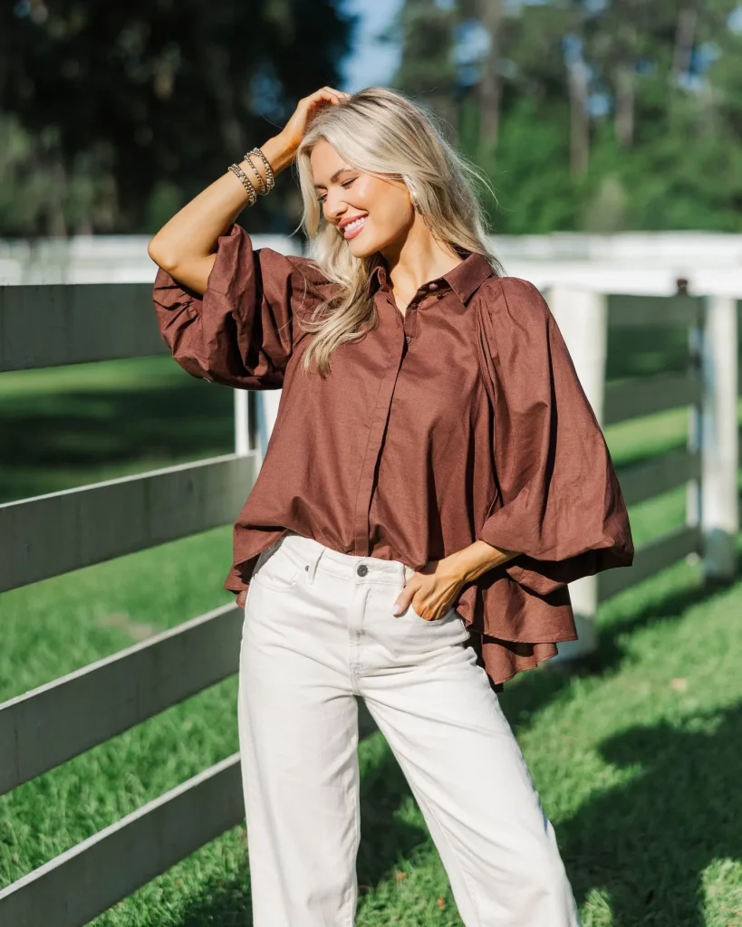 Make a simple jeans-and-blouse combo look intentional and chic.