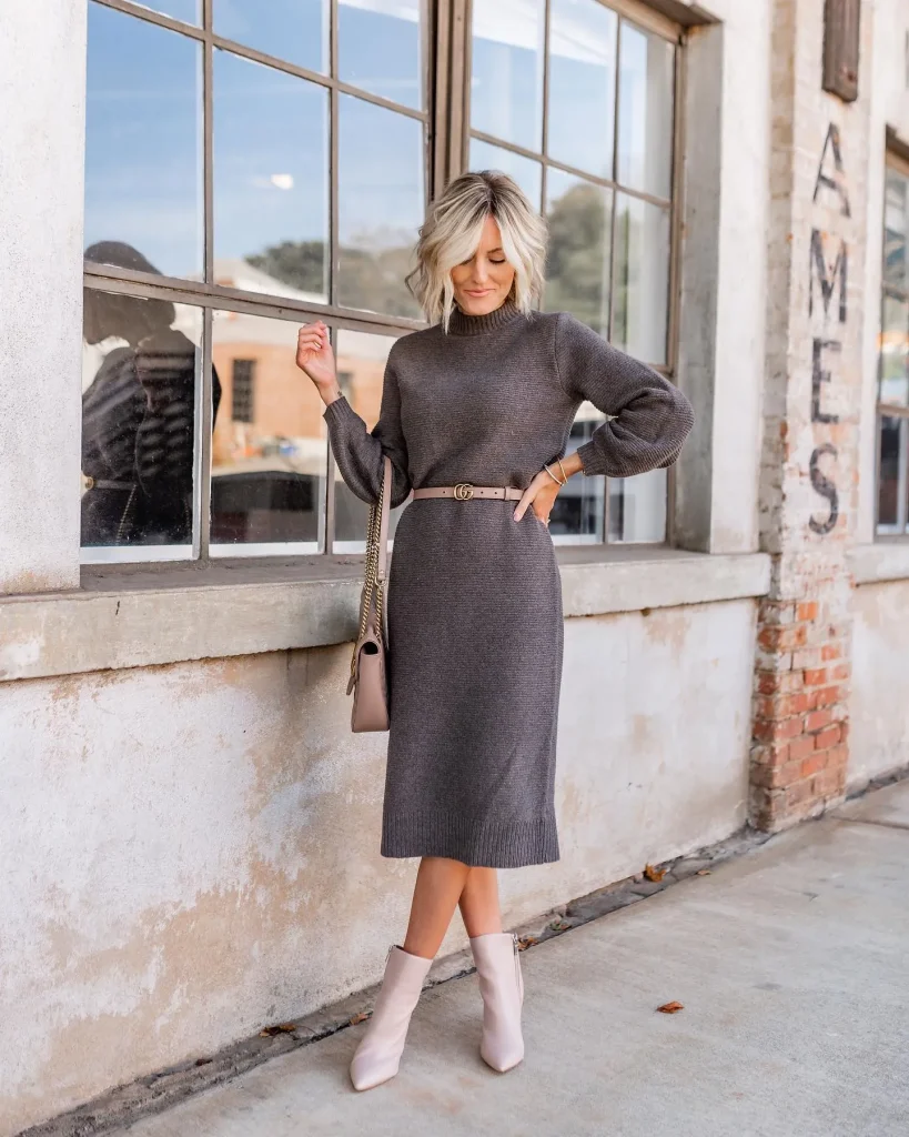 Belt it at the waist to add definition and pair it with knee-high boots or stylish ankle booties.