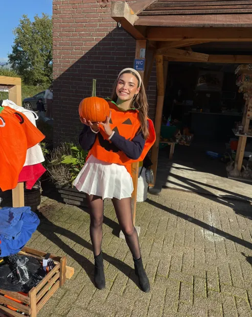 This is less about a literal pumpkin costume and more about the color palette.