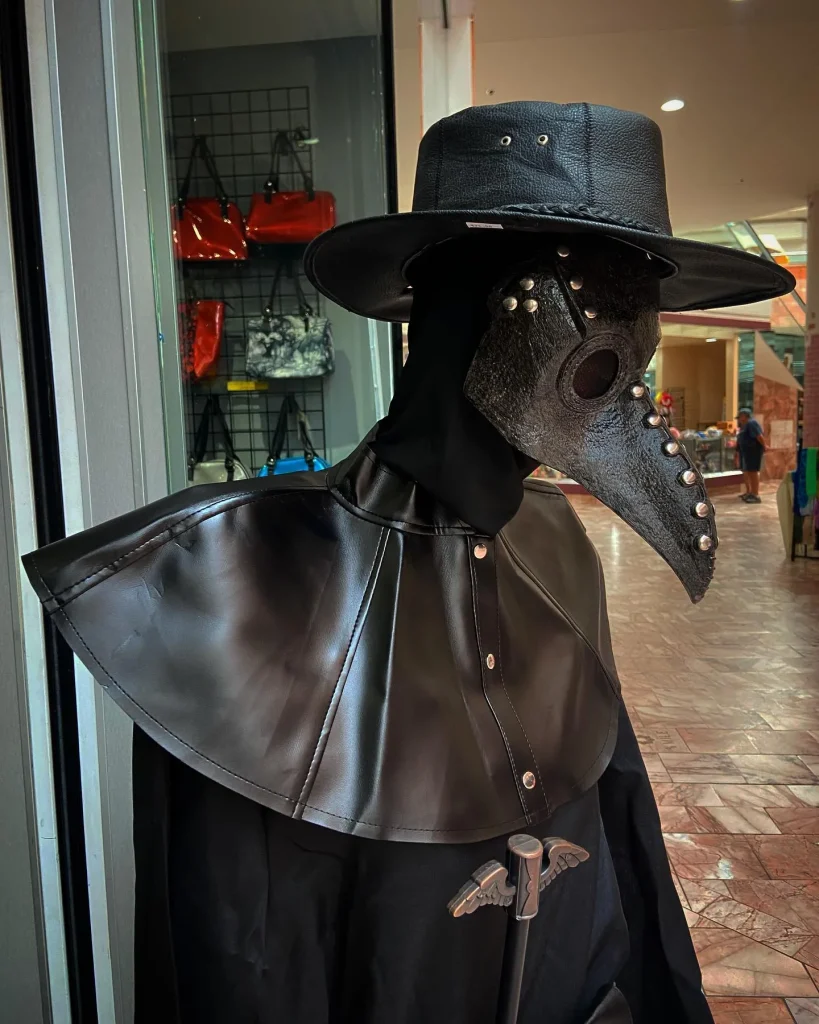 With that long, bird-like mask, wide-brimmed hat, and dark cloak, the silhouette alone is pure nightmare fuel.