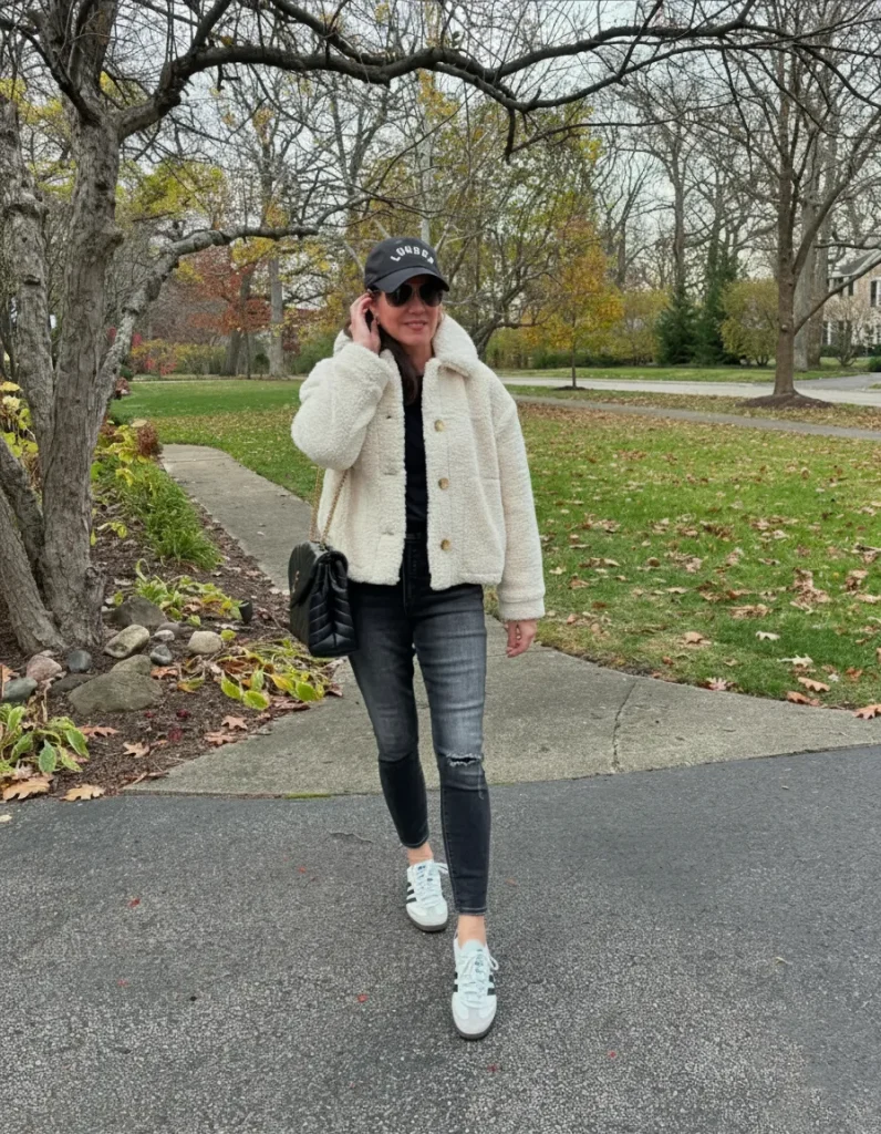 5. Sherpa Jacket & Black Jeans