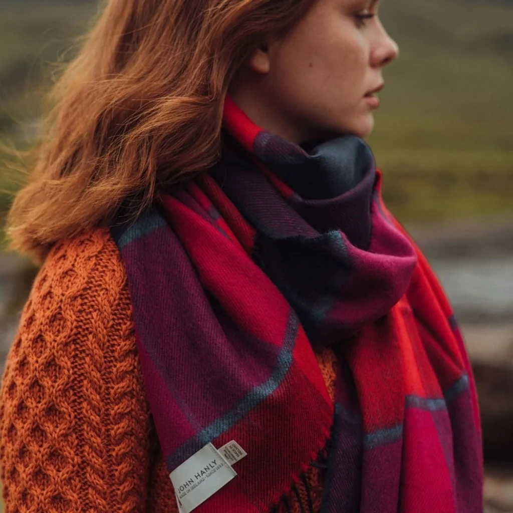 A big, soft blanket scarf is both a style statement and a portable heater.