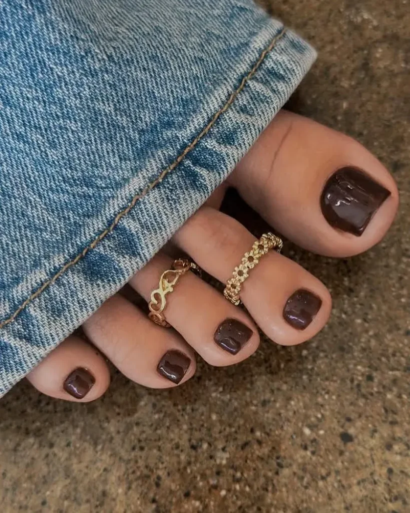 Opt for high-shine gel finishes. Consult our pedicure guide by skin tone to find a shade that complements your complexion and shoe choice.