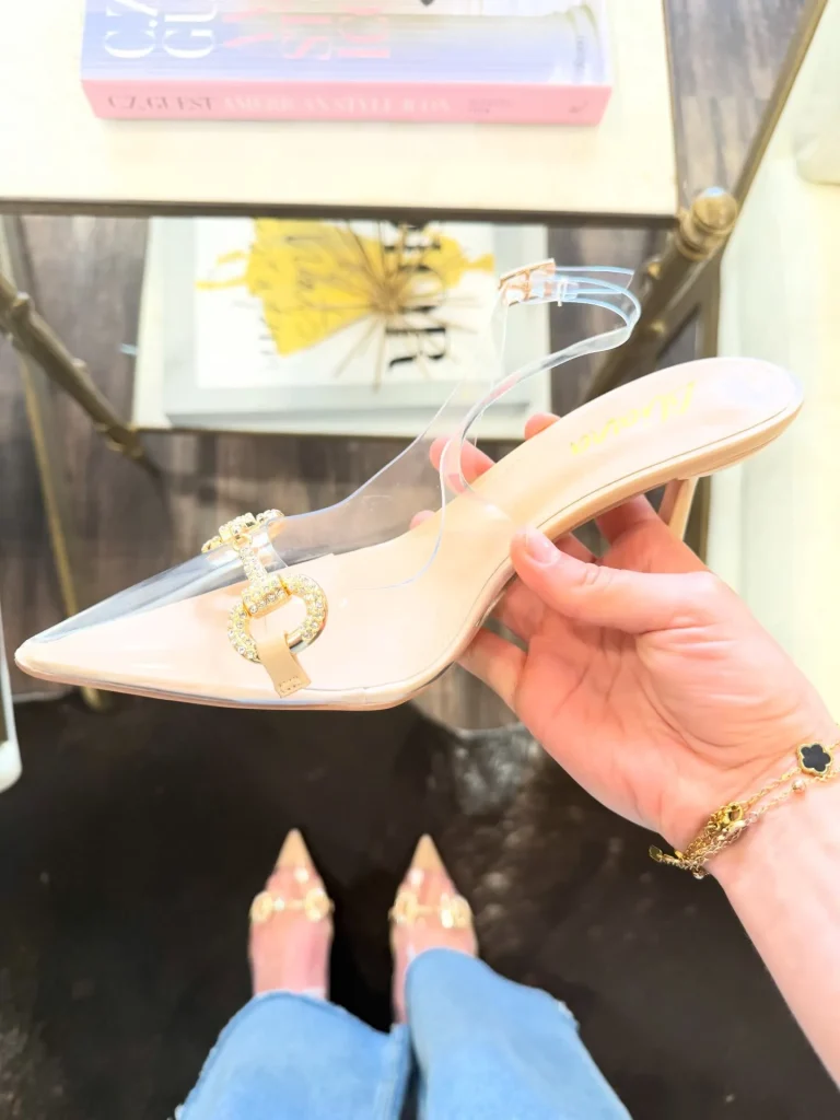 Currently, the “barely there” aesthetic dominates the scene. Think clear PVC straps that elongate the legs and create an illusion of floating.