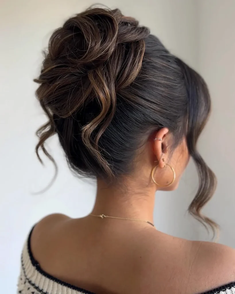 Combine the elegance of a bun with the texture of a braid for a sophisticated winter updo.