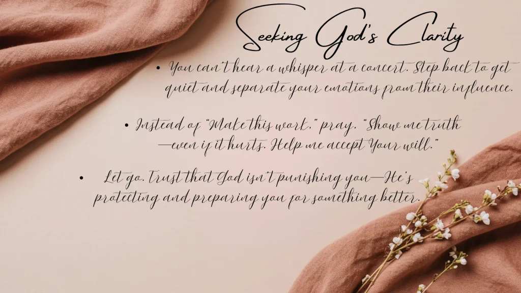 - Pray for Truth, Not a Specific Outcome: Shift your prayer from, “God, please make this work,” to “God, please show me the truth, even if it hurts. Give me the strength to accept Your will.”