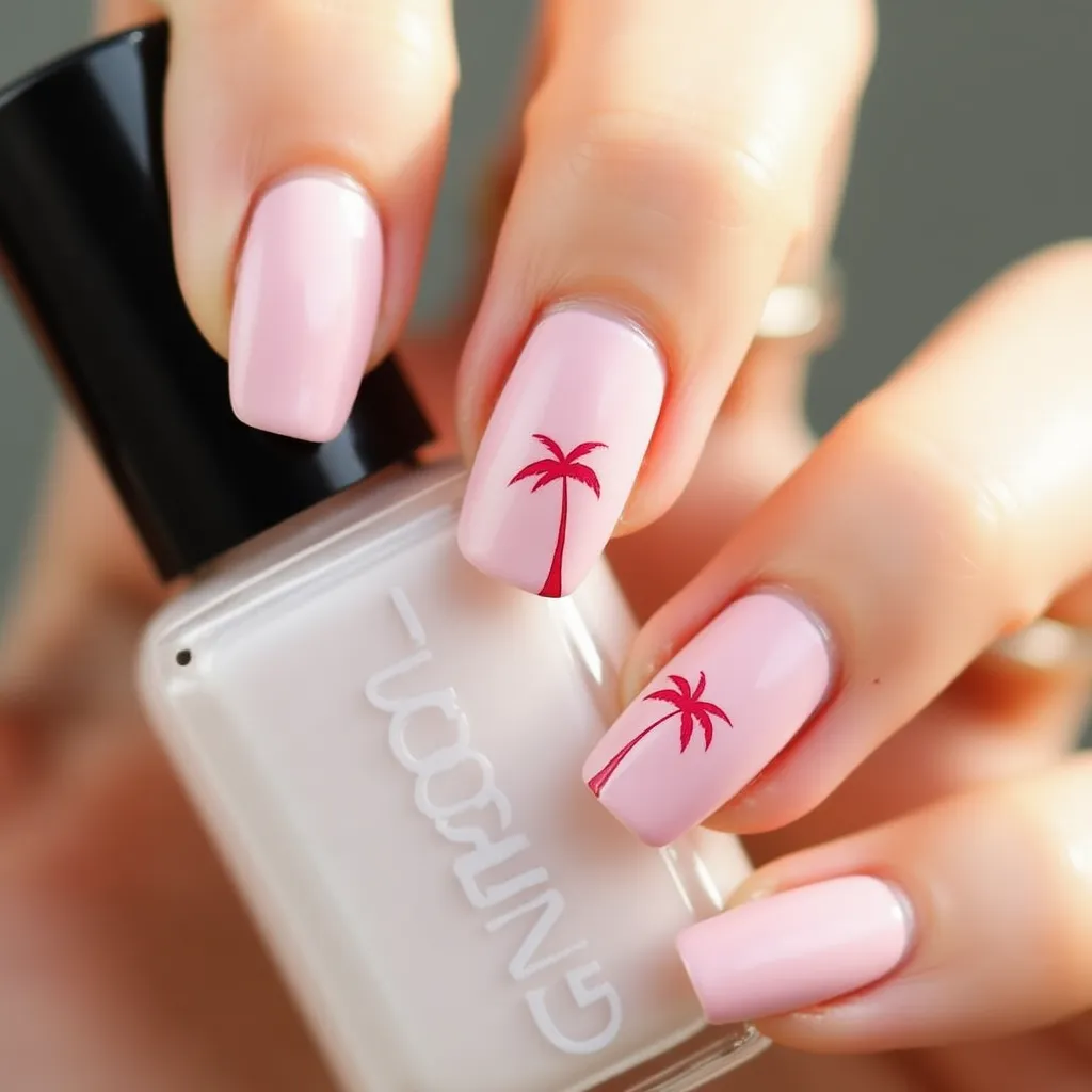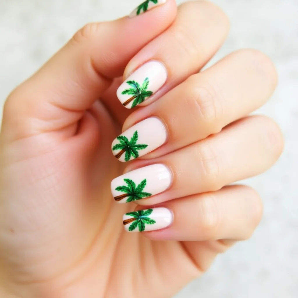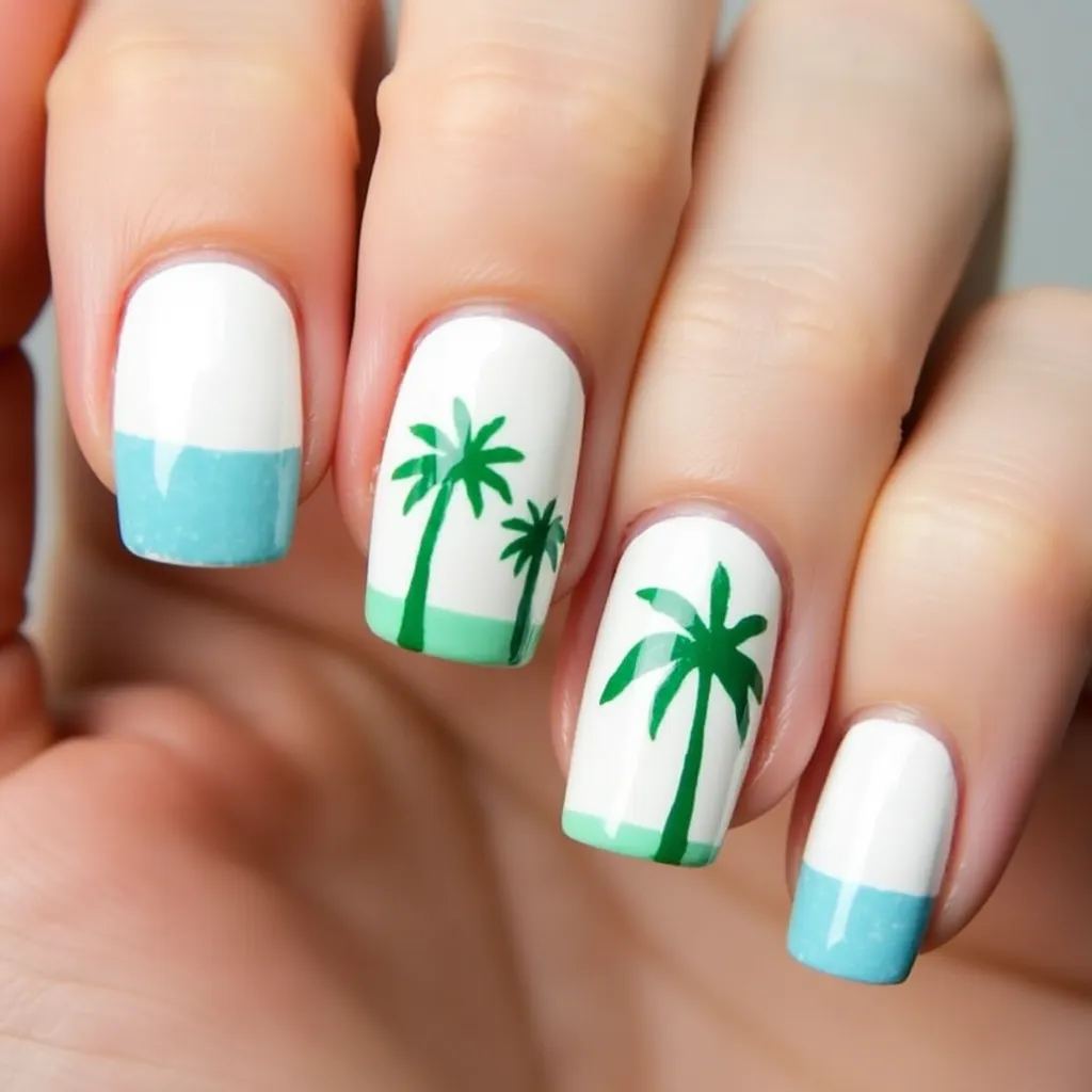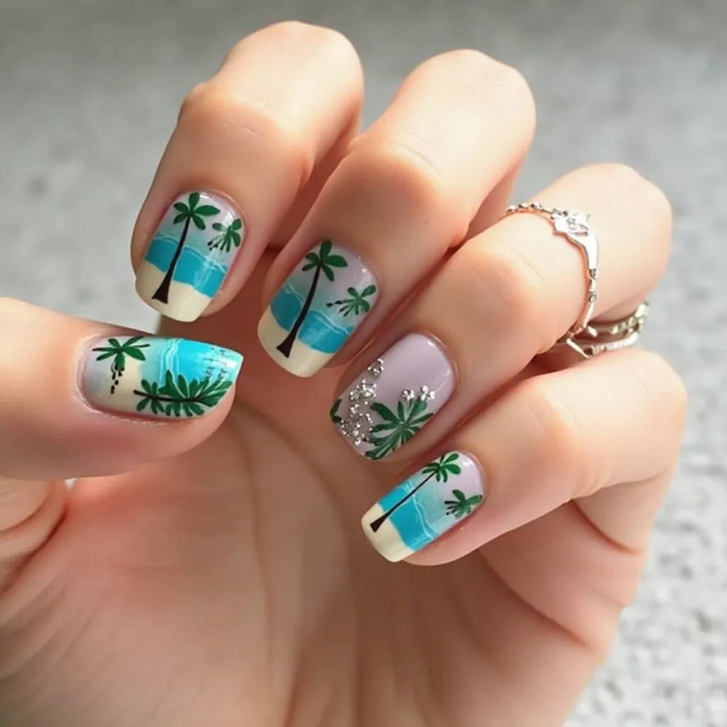 Add tiny palm tree charms or embellishments to your nails for a unique touch.