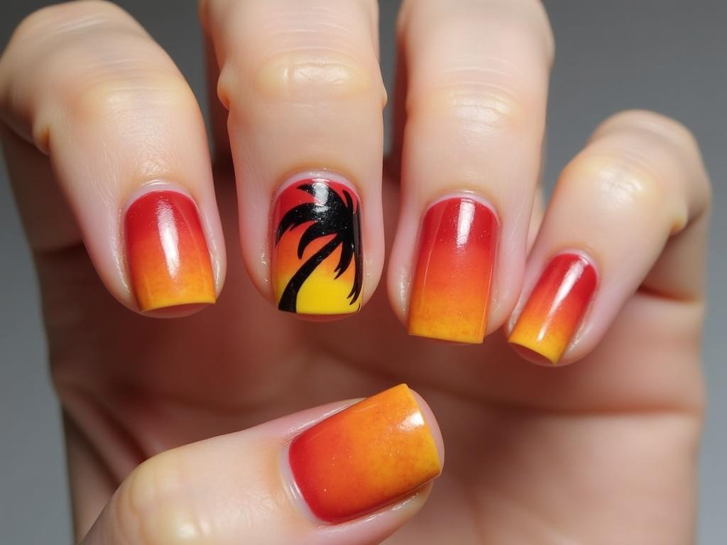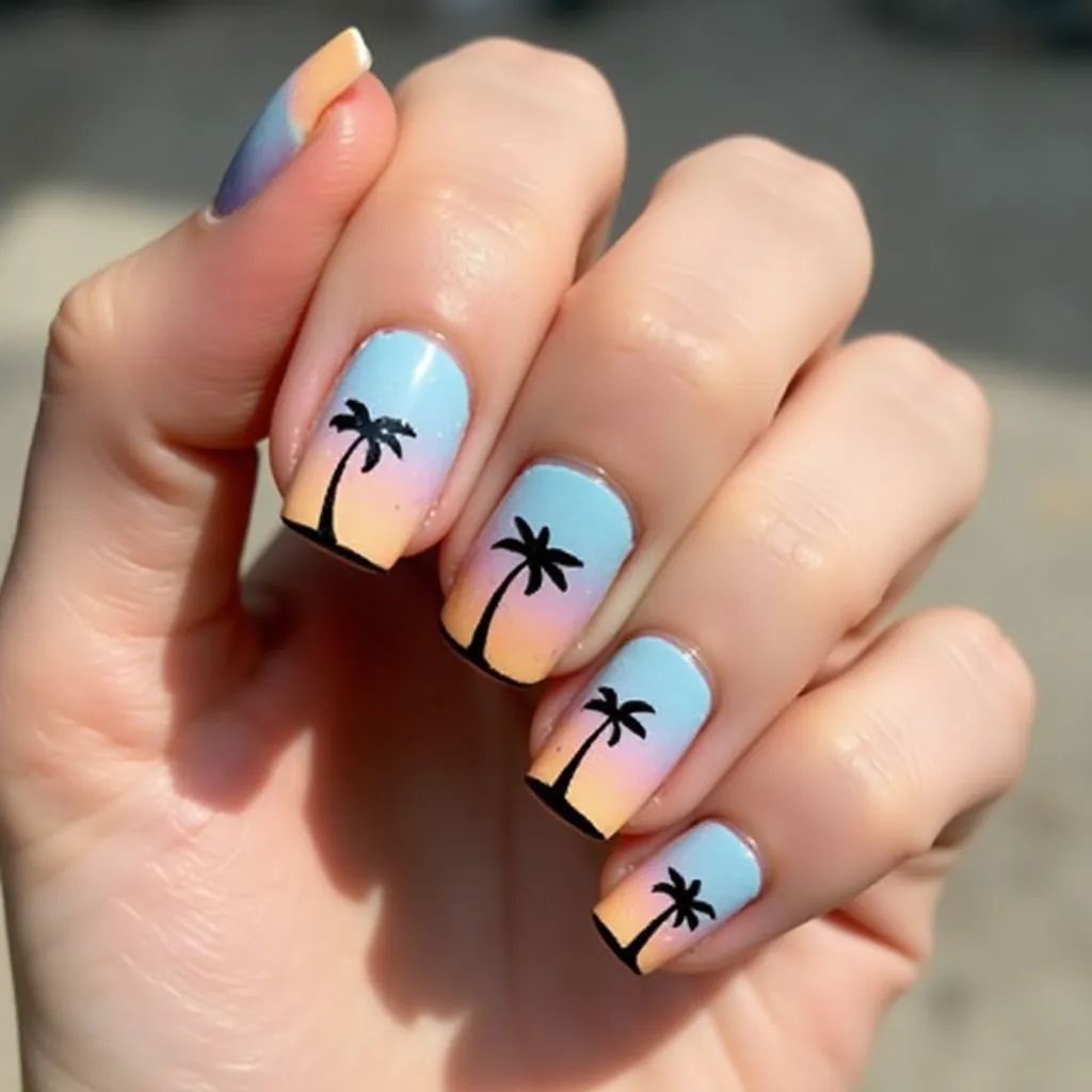 Blend orange and pink polish to create a sunset ombre, with black palm trees as the focal point.
