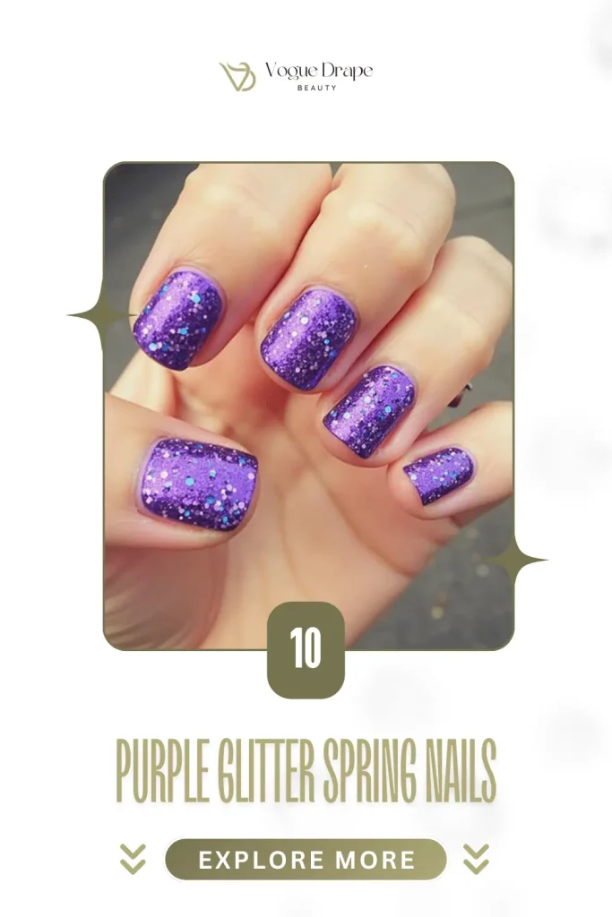 Spring is the perfect time to embrace bold and vibrant colors, and purple glitter nails offer the ideal balance of fun and elegance. With their sparkling allure, purple glitter nails are perfect for making a statement while welcoming the fresh energy of the season. Whether you love soft shimmer or full-on sparkle, these designs will elevate your spring nail game. Here are 10 purple glitter nail designs that’ll add a touch of sparkle to your spring!