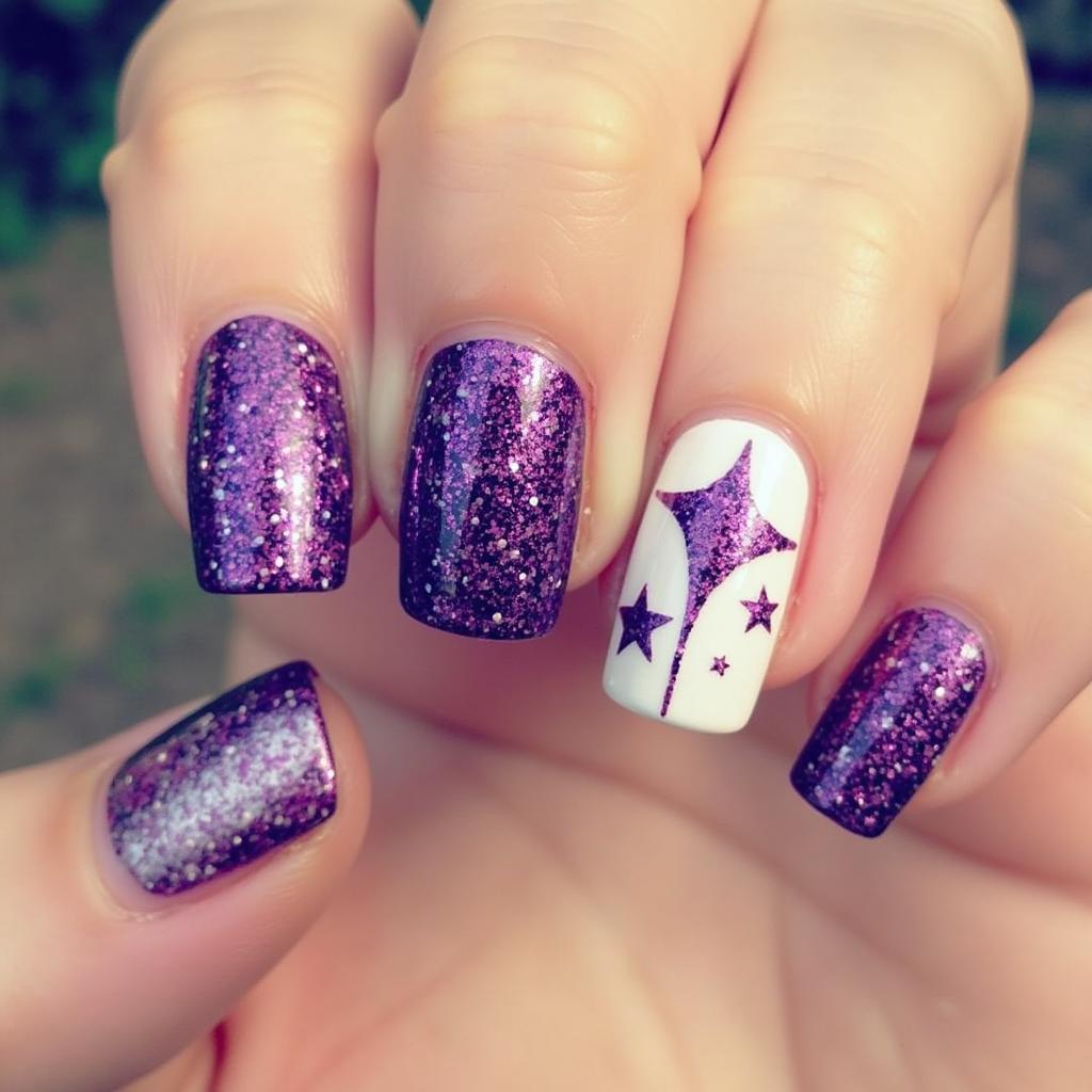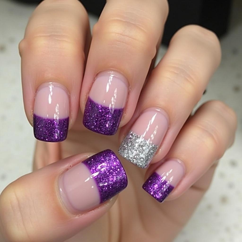 4. Purple Glitter Accent Nails