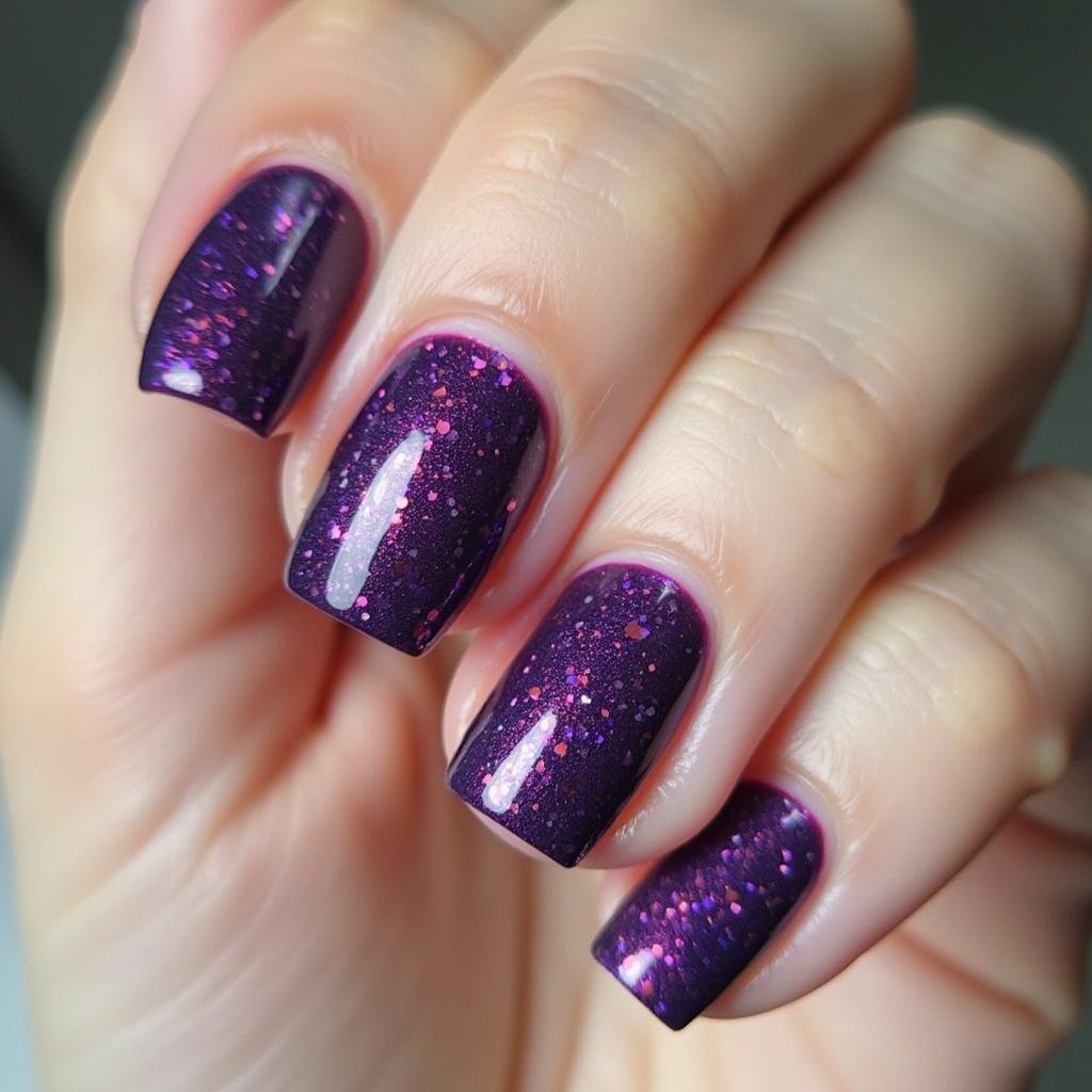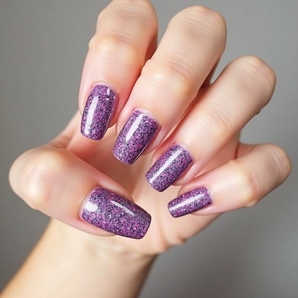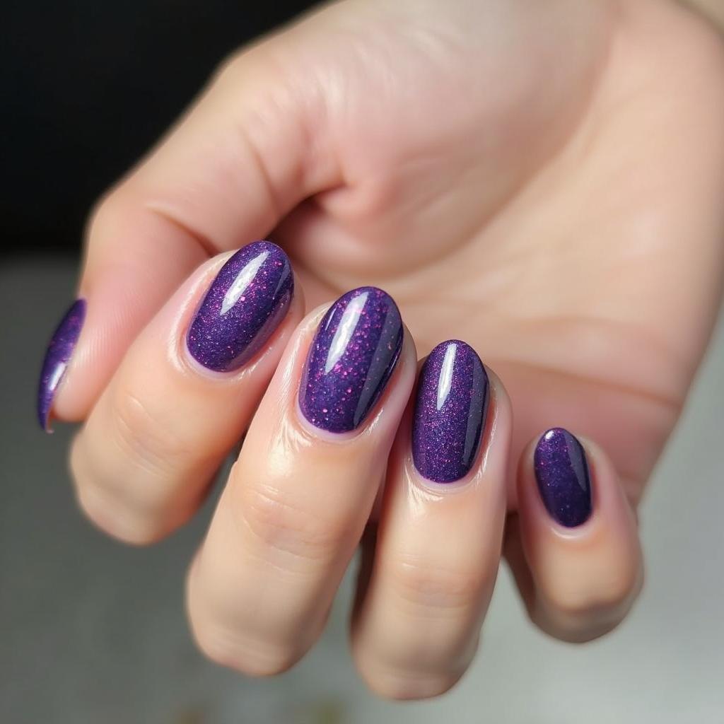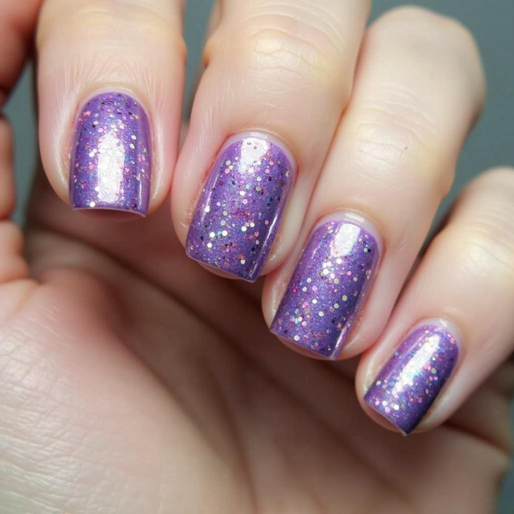 If you prefer a subtle hint of sparkle, try accent nails with purple glitter while keeping the rest of your nails in a neutral or solid color.