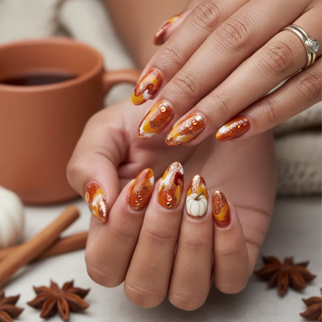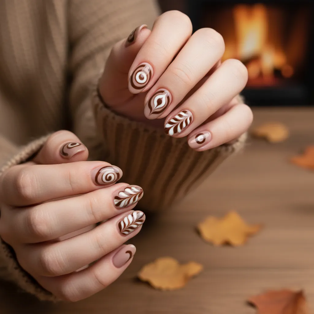 It captures the essence of your favorite fall drink on your nails, working beautifully for Creative Fall Nail Designs.