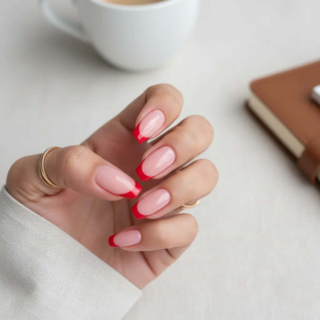 Instead of a traditional white tip, a sharp, clean line of red gives your nails an edgy yet sophisticated feel.