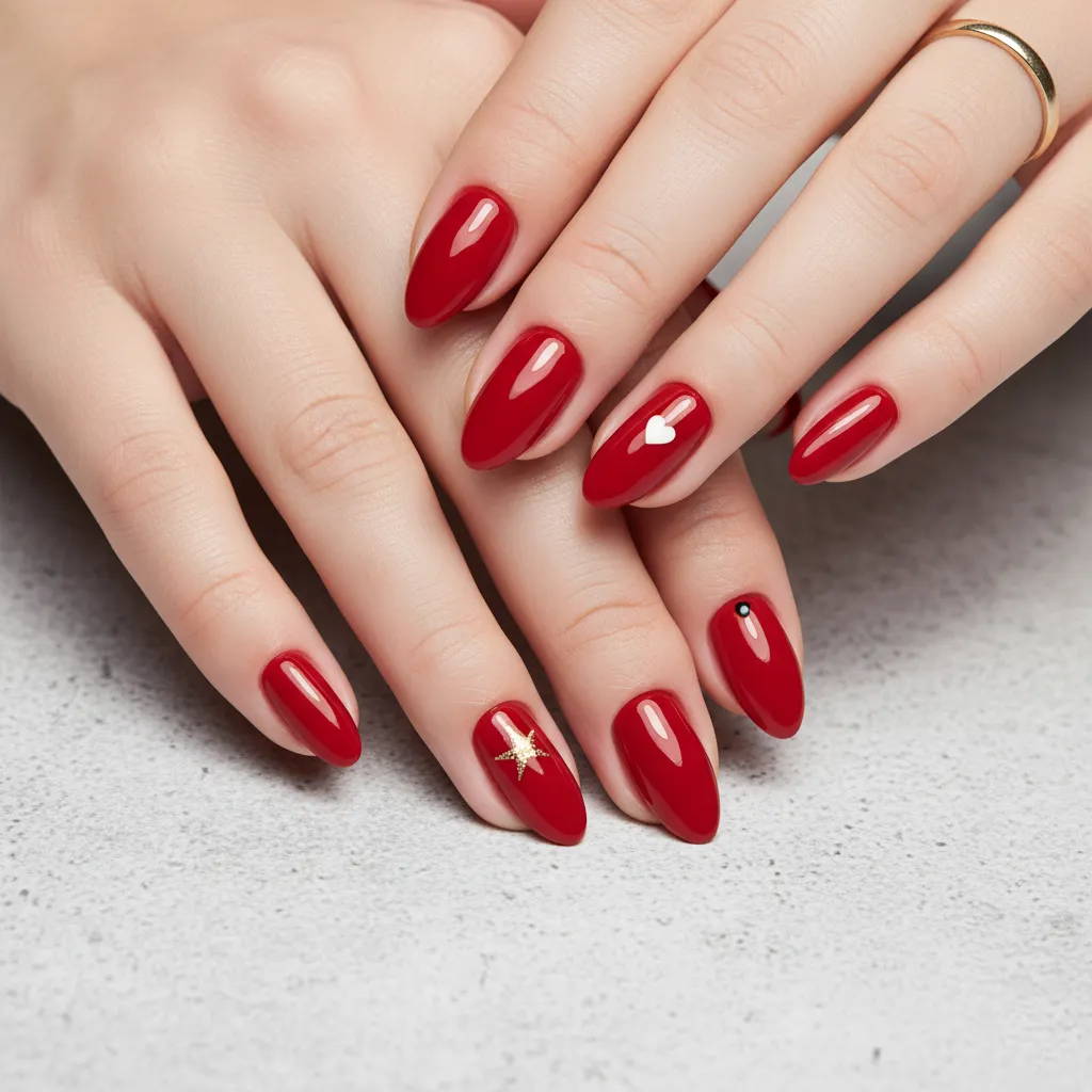 A single, tiny white heart near the cuticle, a small black dot, or a delicate gold star on one or two nails.