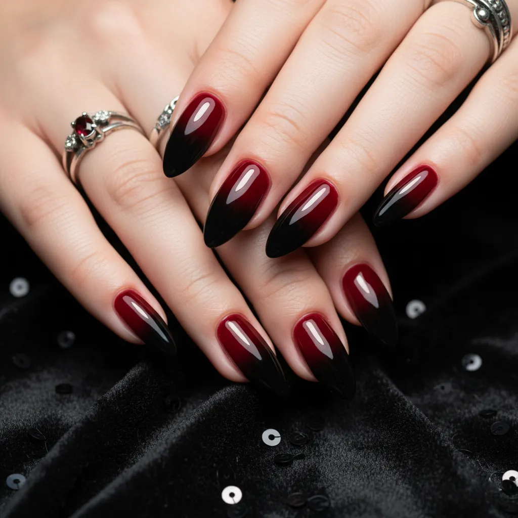 Think of a deep cherry red seamlessly fading into a stark black at the tips for a vampy vibe.