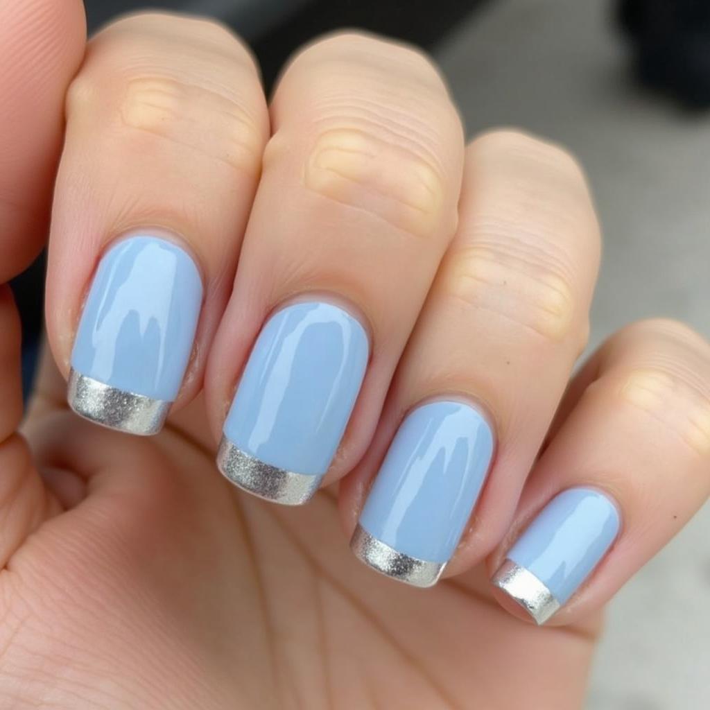 Add a touch of sparkle to your baby blue nails by applying silver tips for a chic and modern twist on a French manicure.