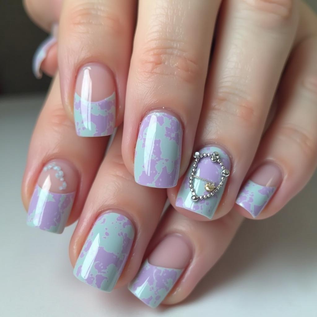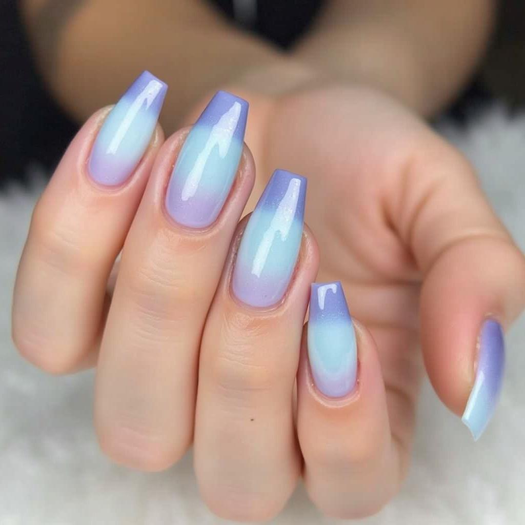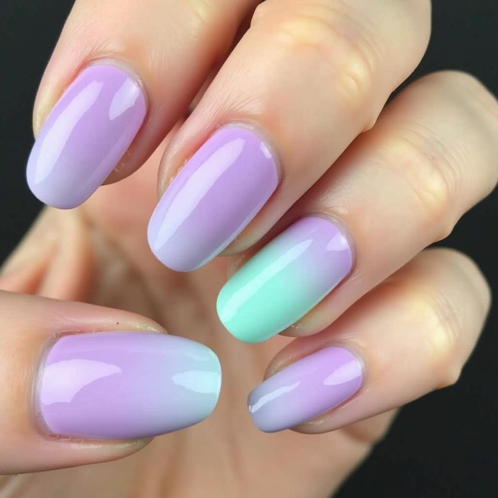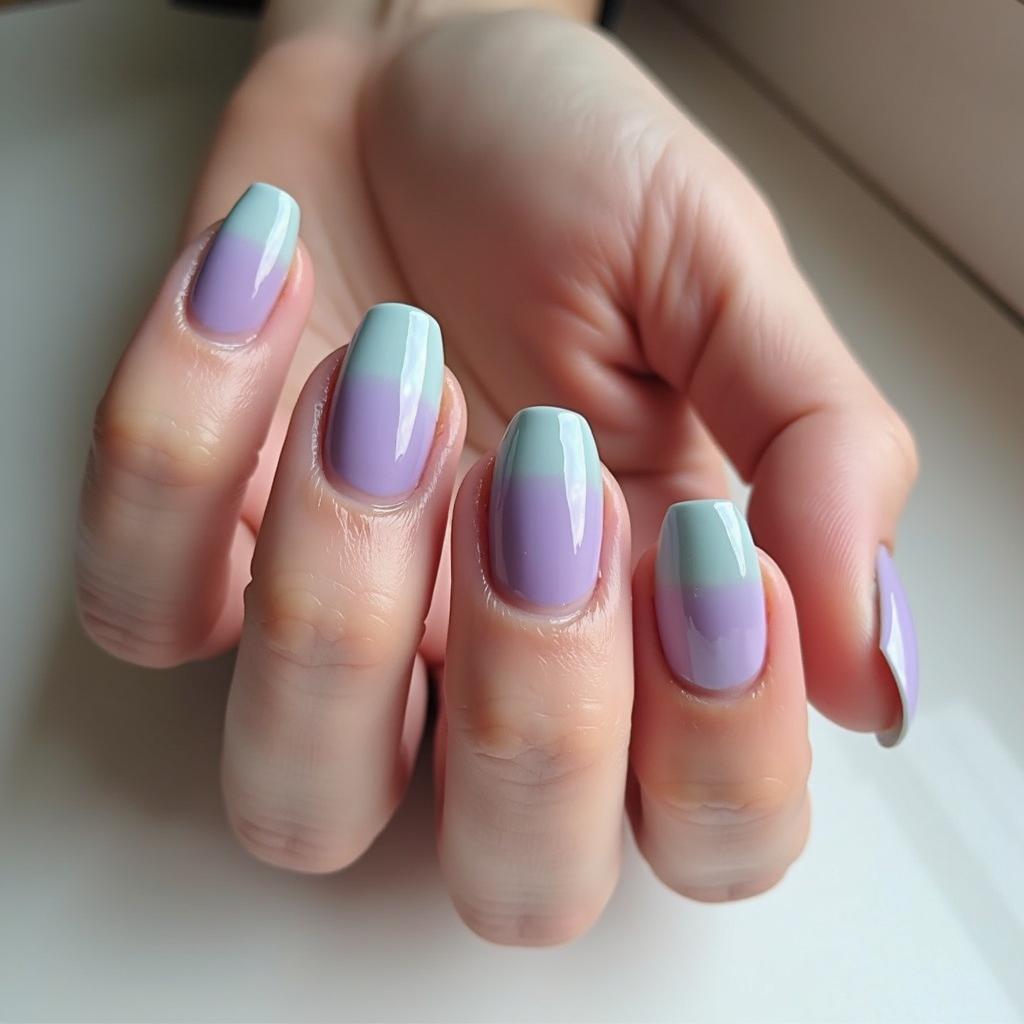 Start with mint green at the base of your nails and gradually fade into soft lavender for a dreamy, gradient effect.