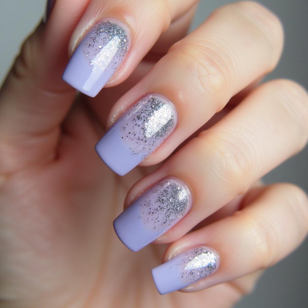 Create a lavender base and finish with a silver glitter gradient at the tips for a magical and elegant look.