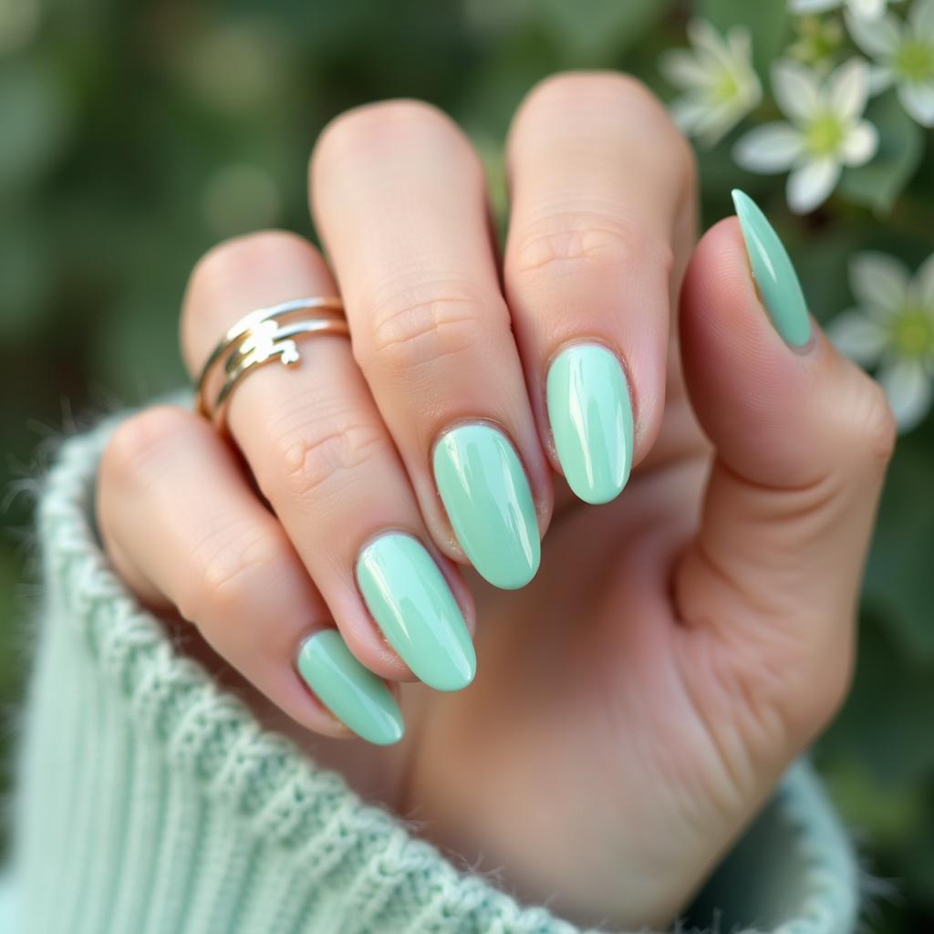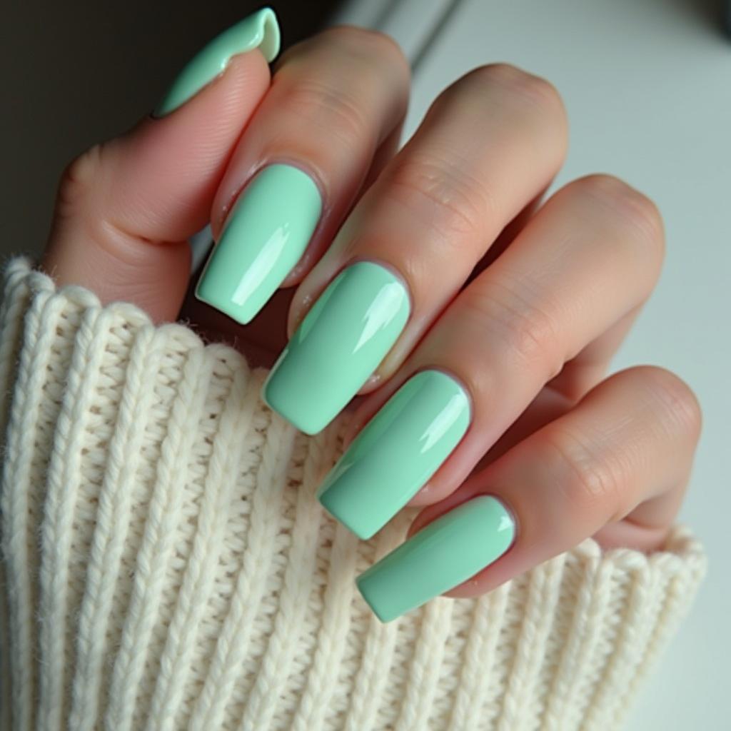 Go for a fresh, clean look with a solid mint green manicure. It’s subtle, stylish, and perfect for both casual and formal occasions.