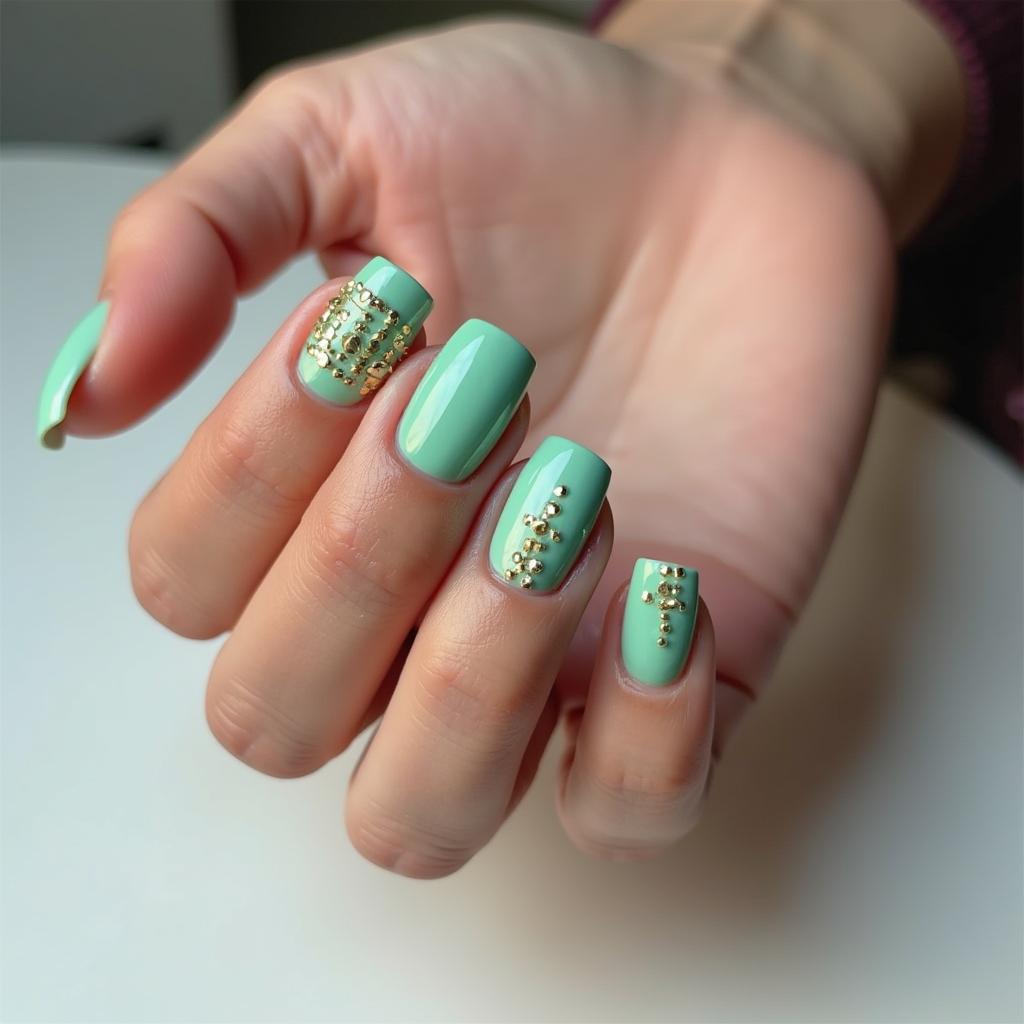Pair mint green with small gold accents like dots or lines to add a touch of luxury to your pastel nails.