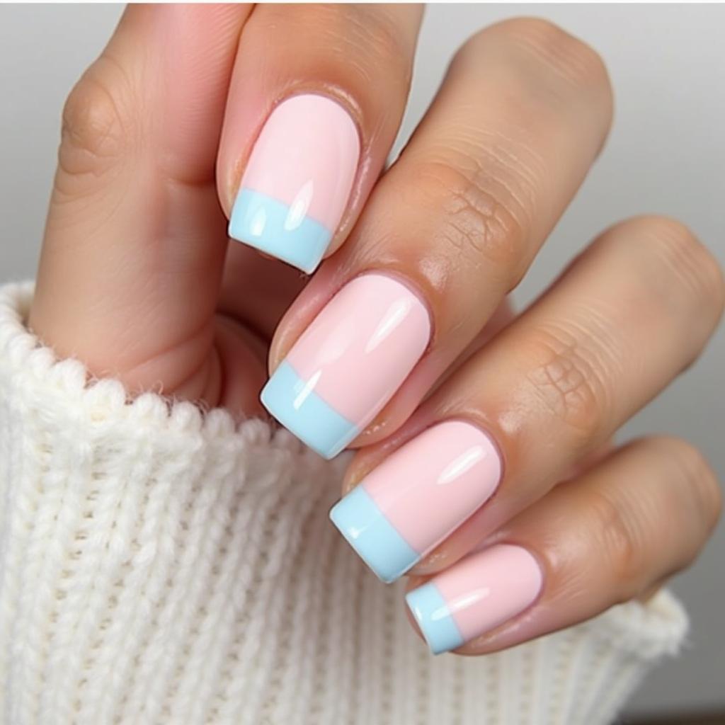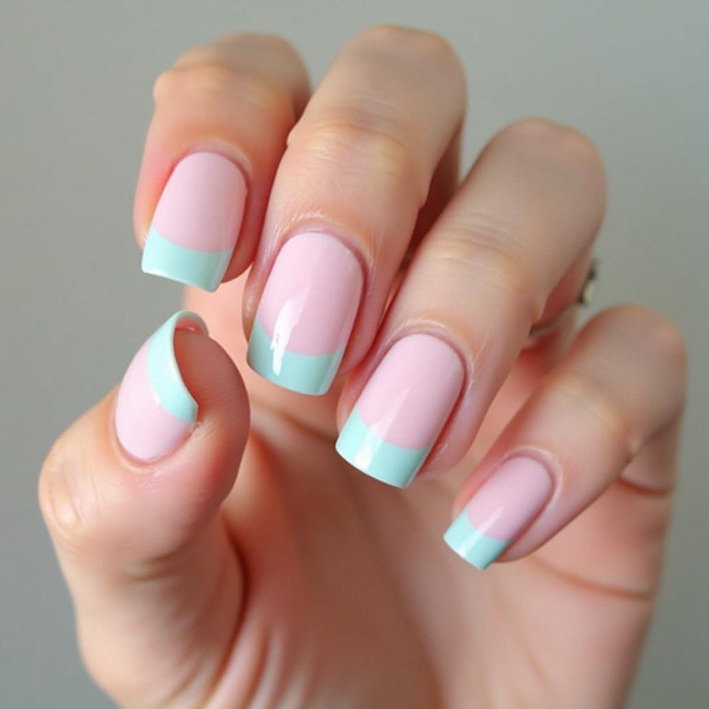 French tips get a spring makeover with pastel shades, giving a fresh and modern twist to the classic design.