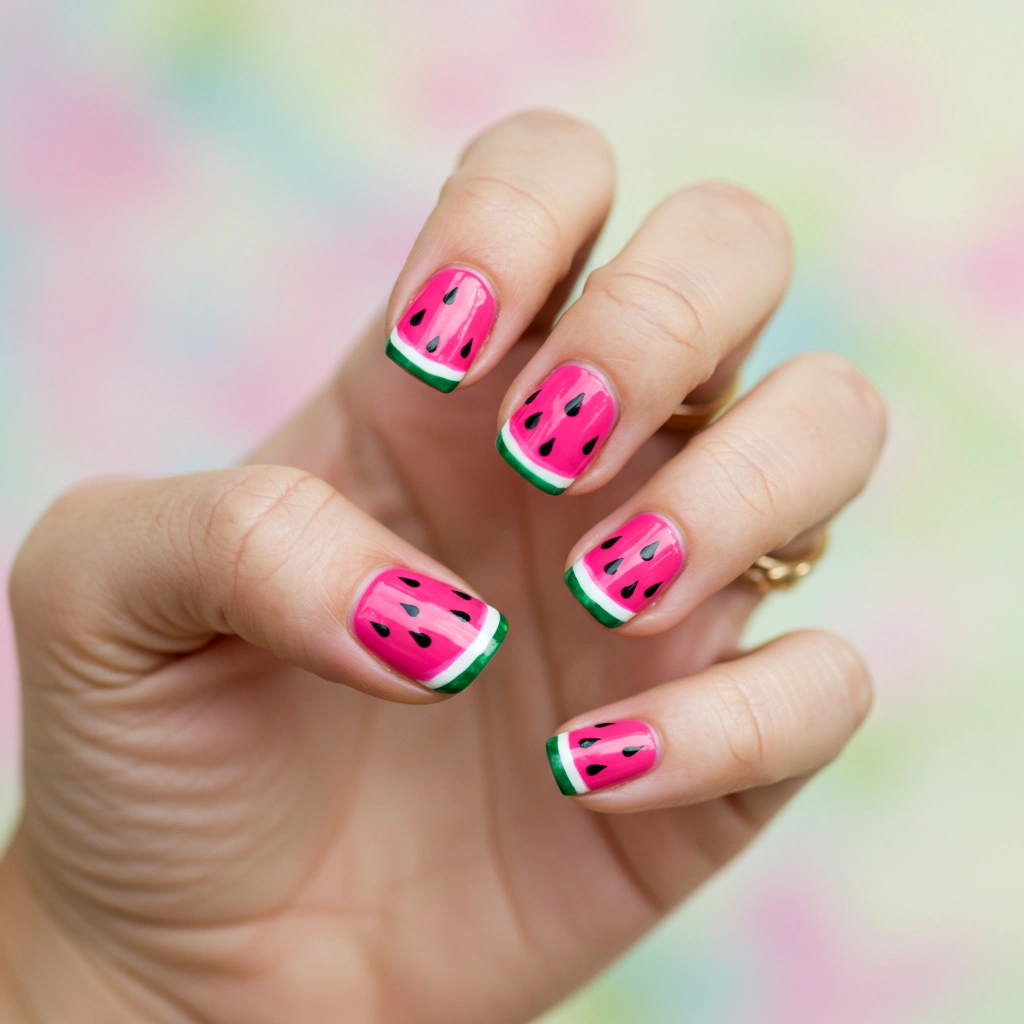 If you’re short on time but still want a fun design, watermelon nail decals are a quick and easy way to achieve the look.
