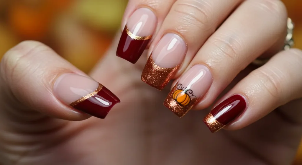 From Cranberry Red Tips to Gilded Autumn Leaves and Chocolate Brown French, you’ve got options that cater to classic tastes, modern vibes, and keep your style soaring.