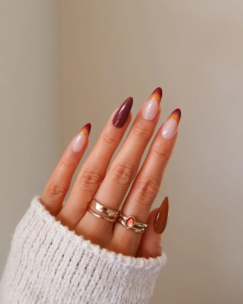 From Cranberry Red Tips to Gilded Autumn Leaves and Chocolate Brown French, you’ve got options that cater to classic tastes, modern vibes, and keep your style soaring.