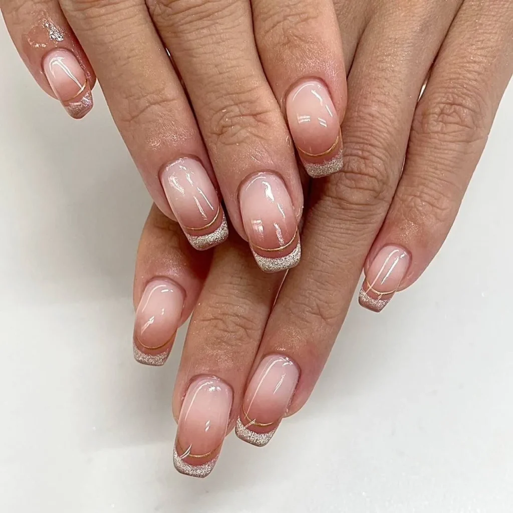 Take your traditional French tip base a beautiful nude or soft pink but instead of a stark white tip, go for a shimmery, rich gold.
