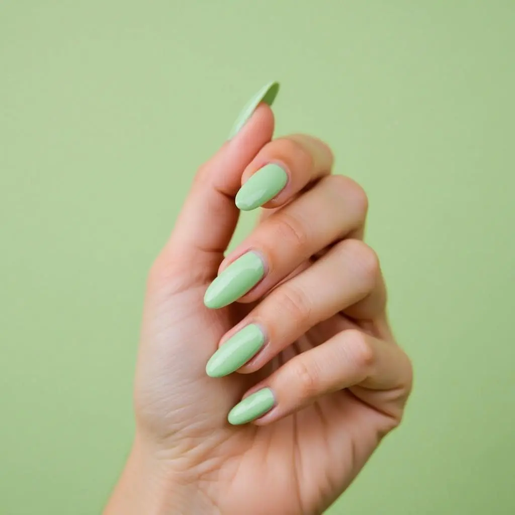 For a clean and minimalist look, opt for a solid pastel green color on all your nails for a soft, chic style.