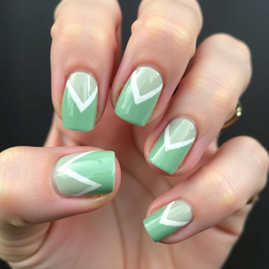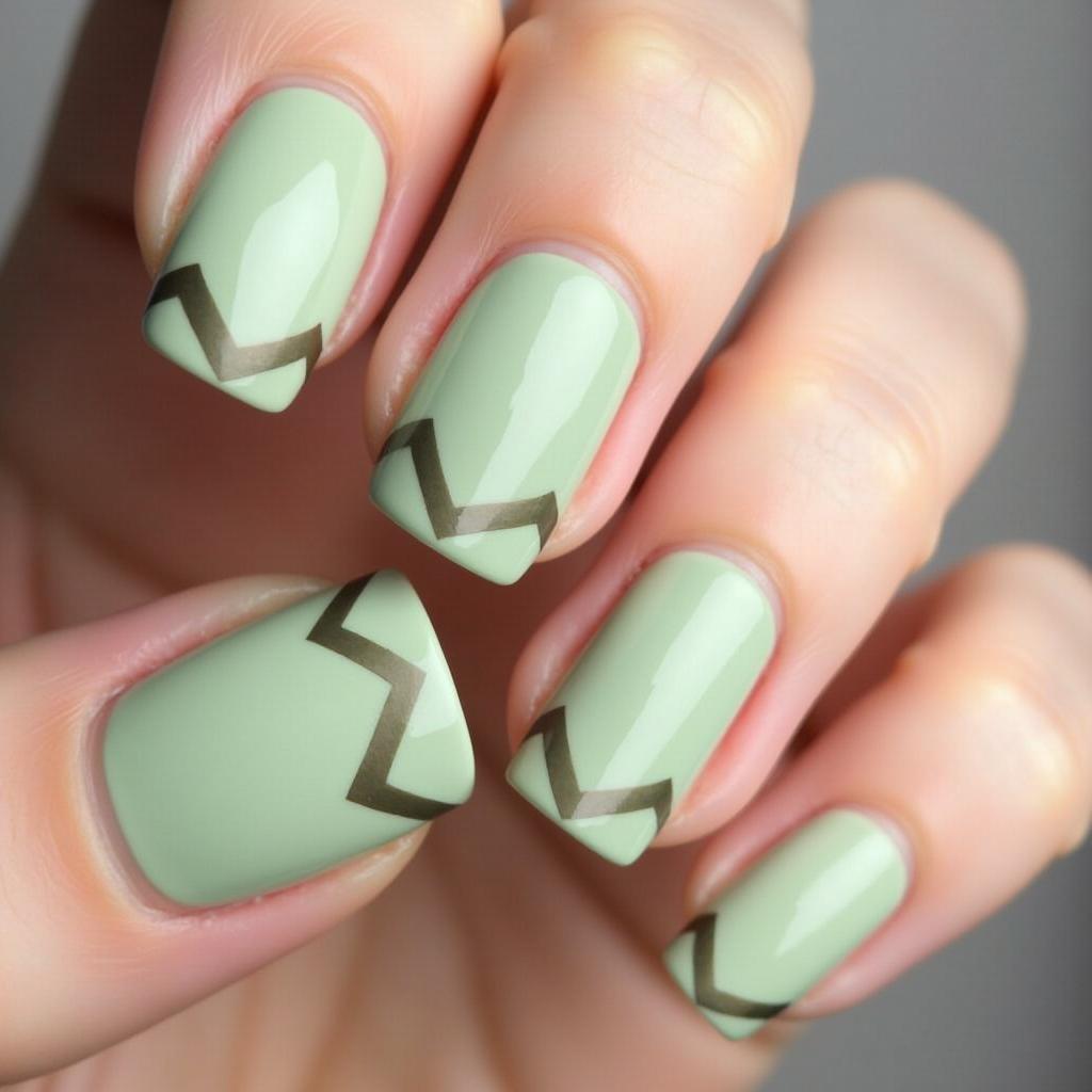 Paint your nails in pastel green and add chevron patterns at the tips for a stylish and modern look.