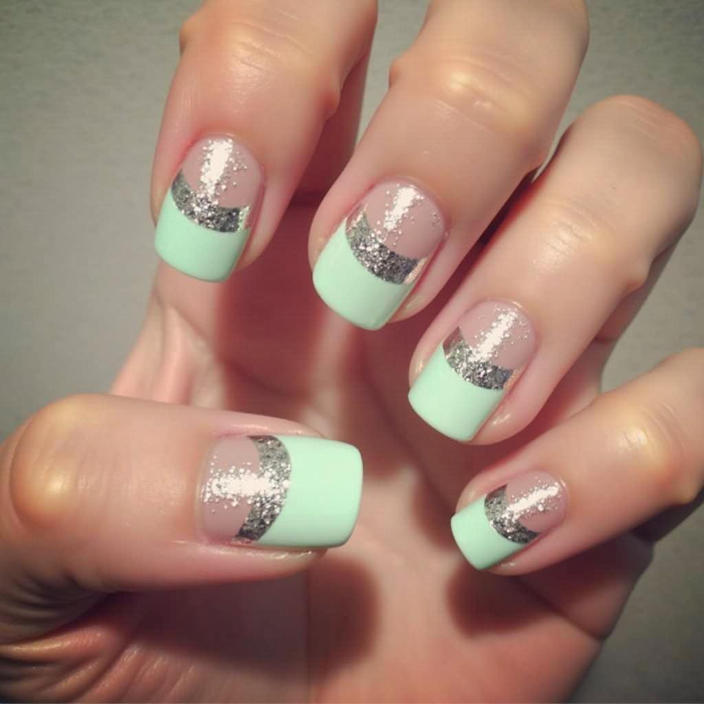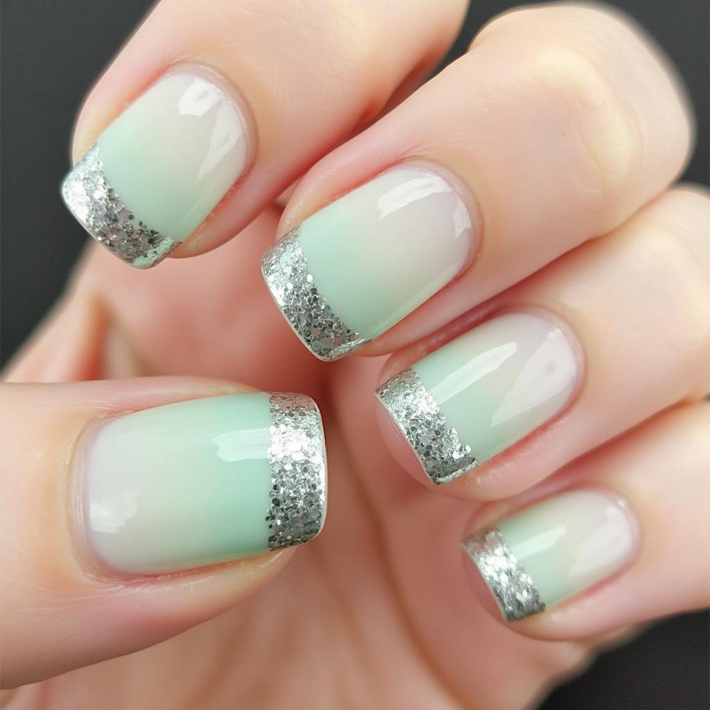 Cover the tips of your pastel green nails with silver glitter for a subtle yet dazzling effect.