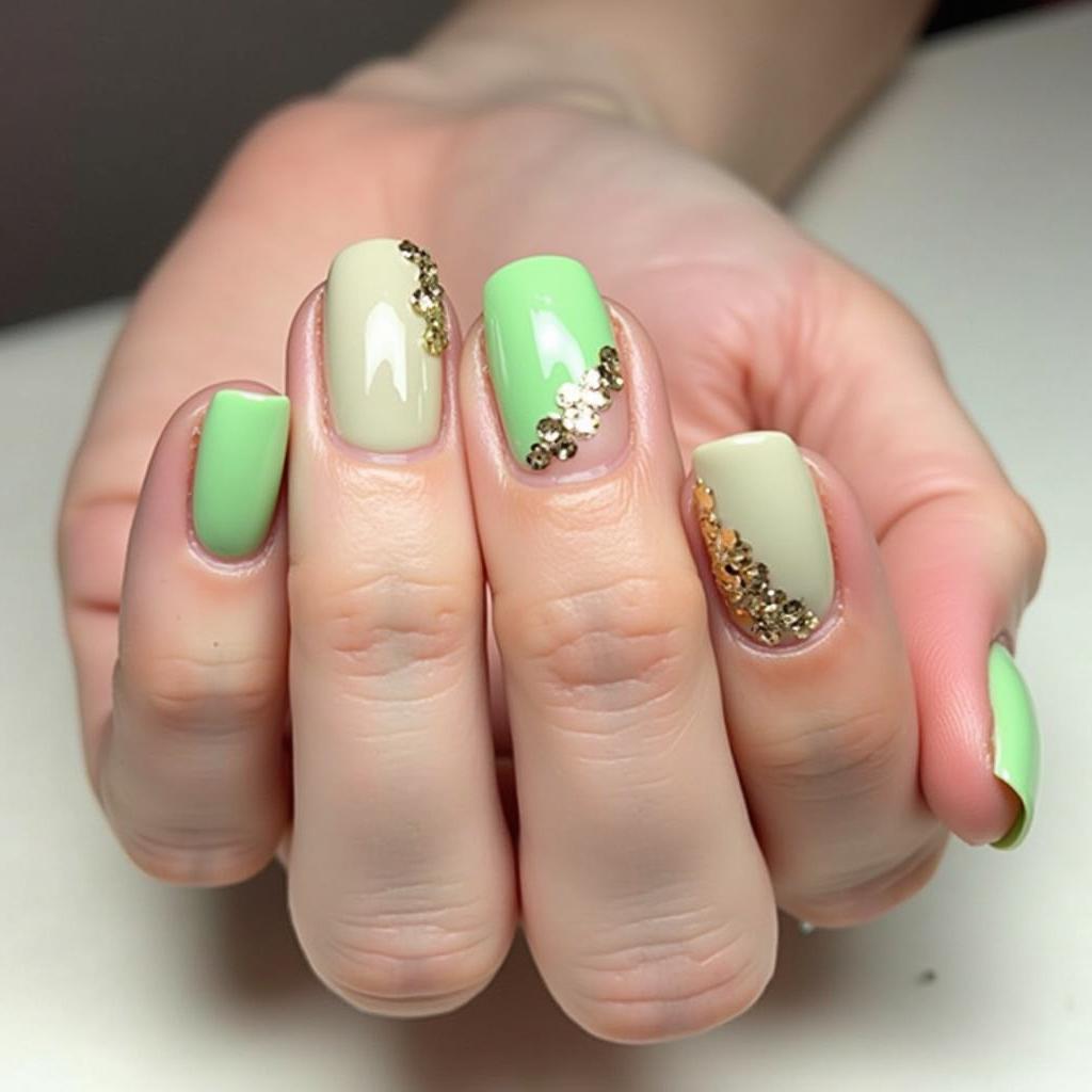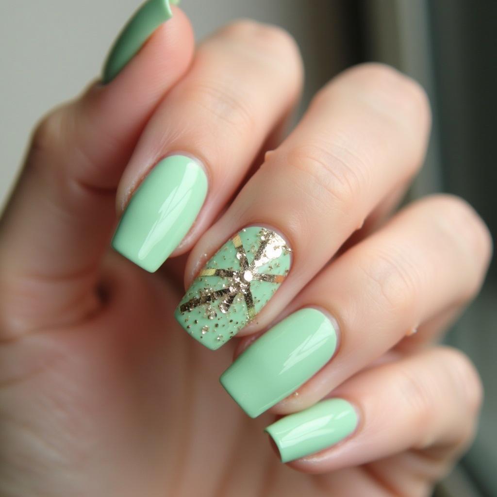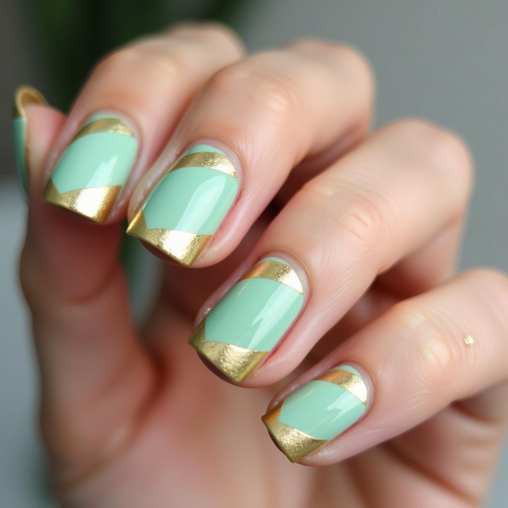 Gold and pastel green are a luxurious combination, giving your nails a refined and elegant look.