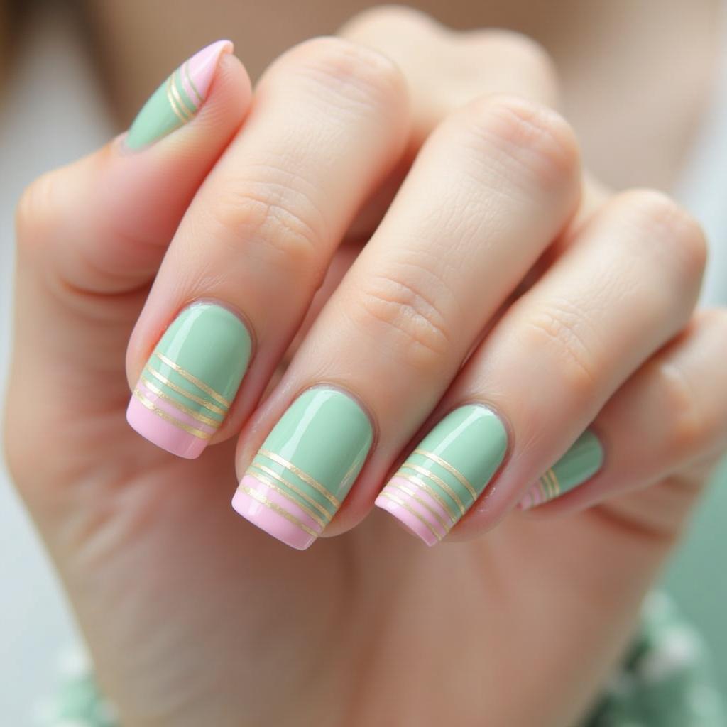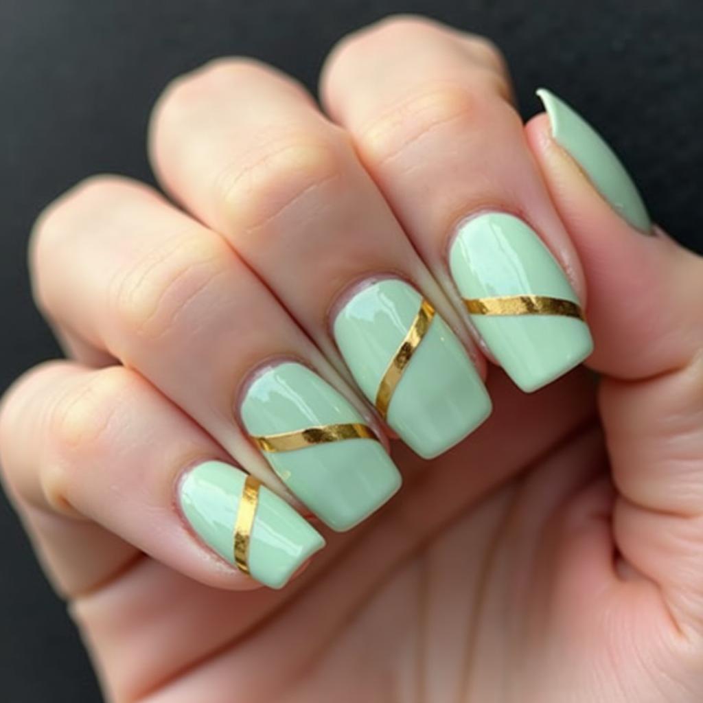 Add delicate gold stripes or lines across your pastel green nails for a minimalist yet chic design.