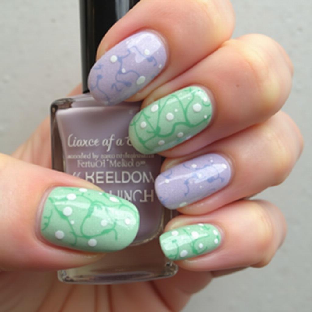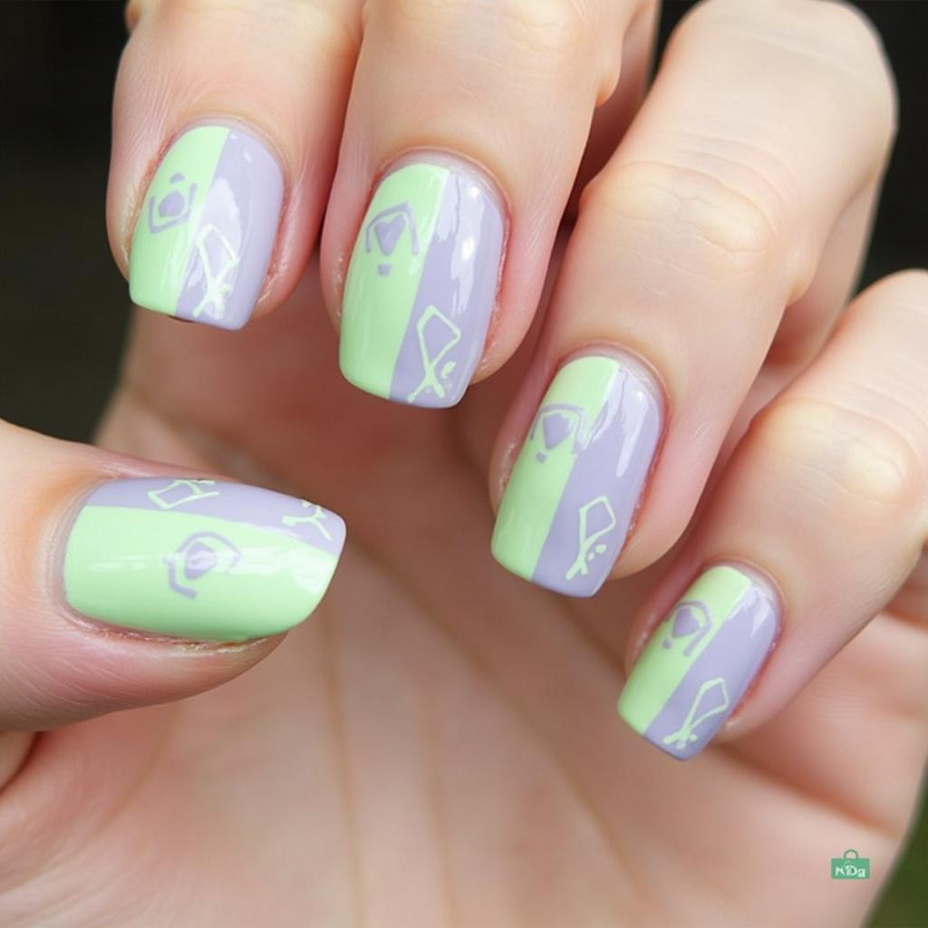 Divide your nails into sections and alternate between pastel green and lavender for a chic, two-tone design.