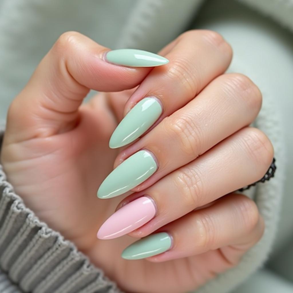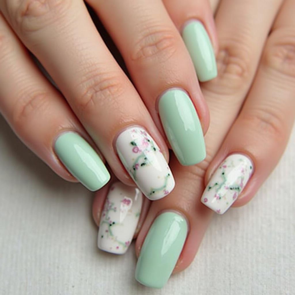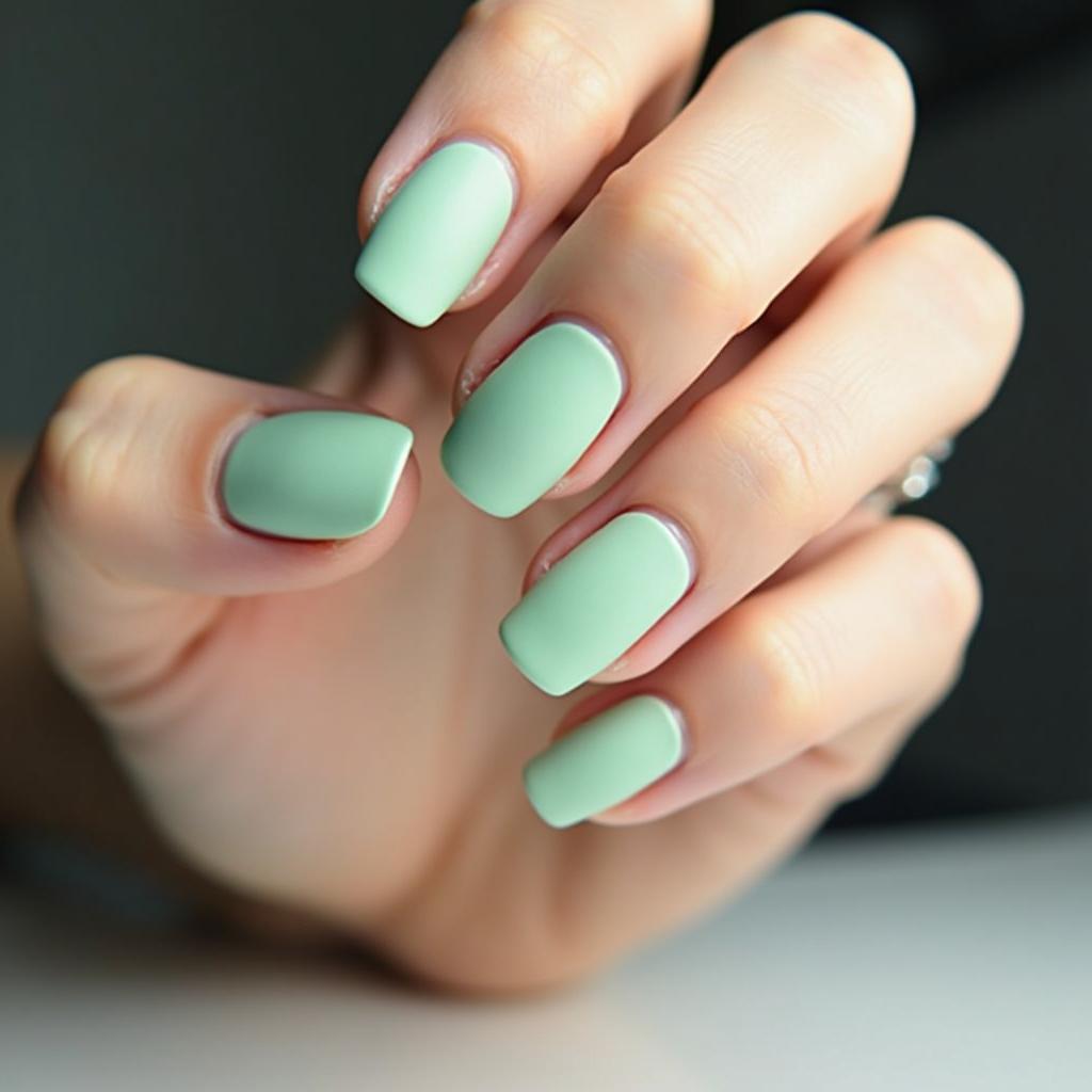 Combine matte pastel green with glossy accents, such as tips or small designs, for a fun contrast and added texture.