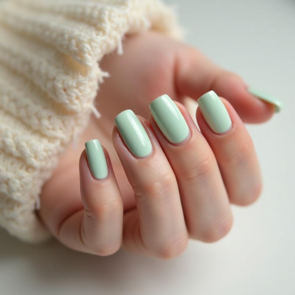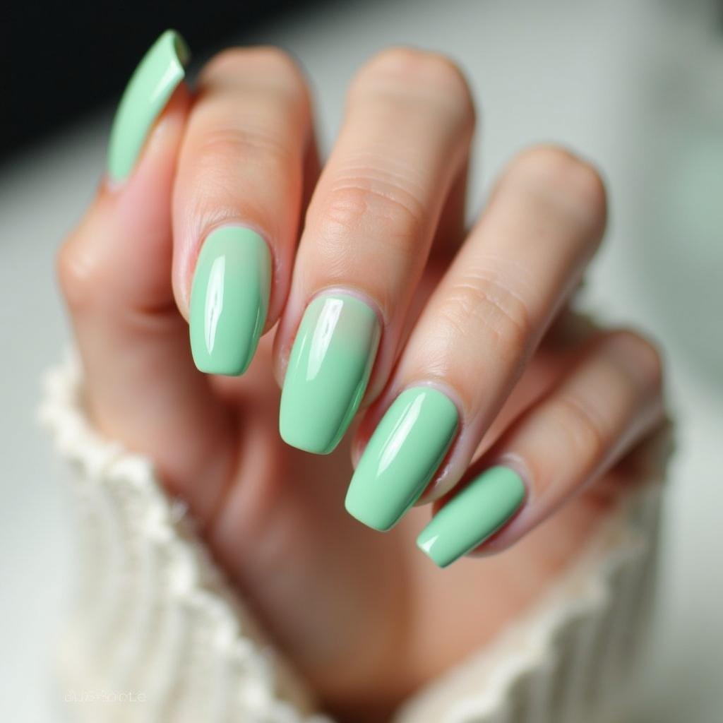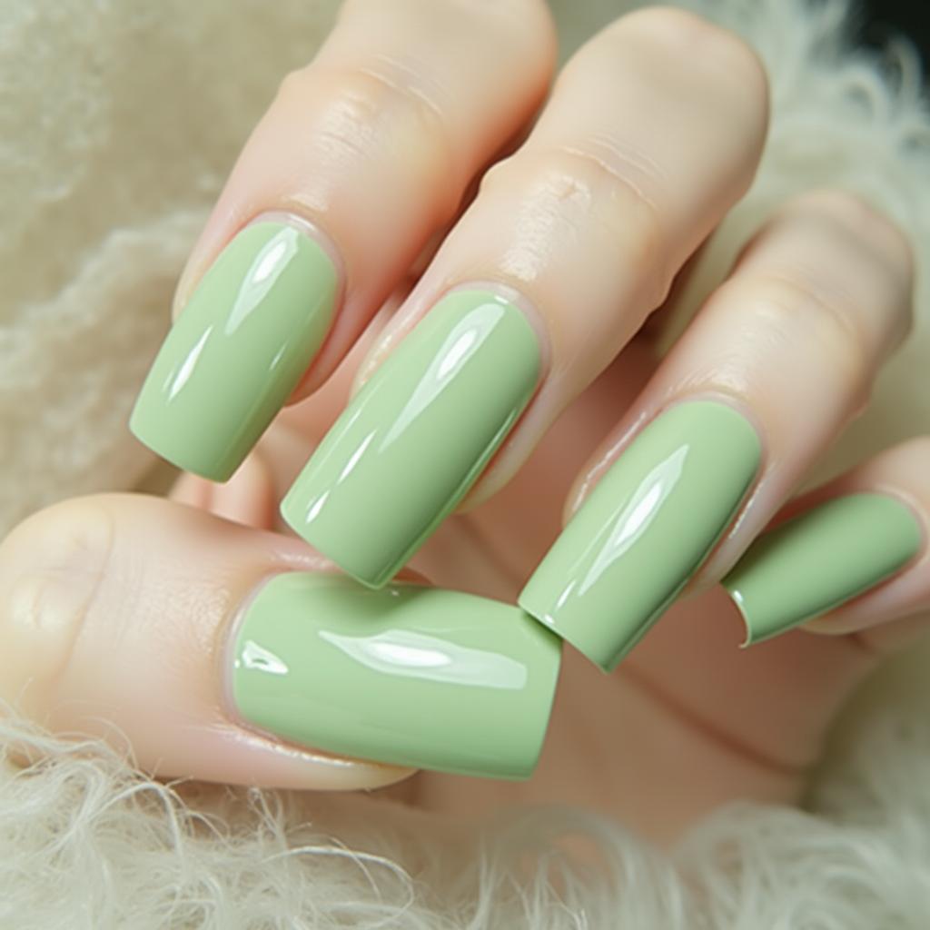 A simple pastel green glossy manicure is a timeless choice that exudes understated elegance.