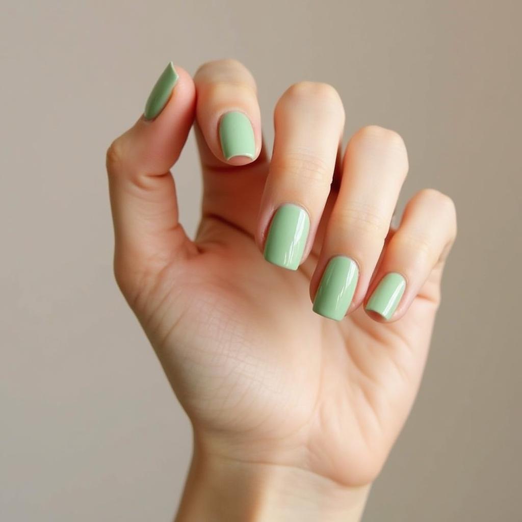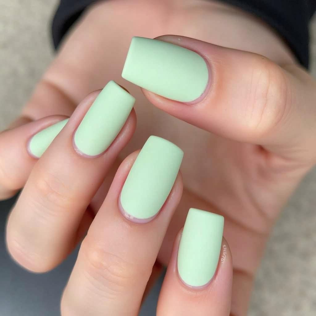 For a clean and minimalist look, opt for a solid pastel green color on all your nails for a soft, chic style.
