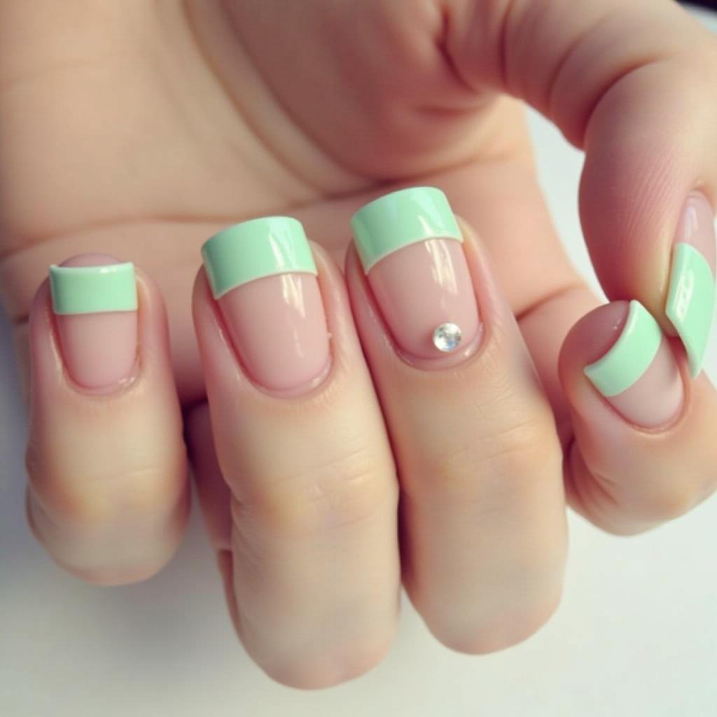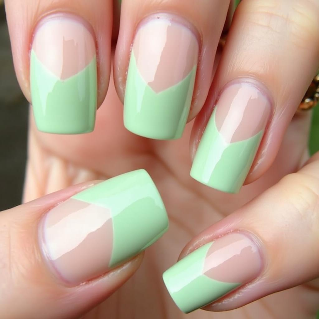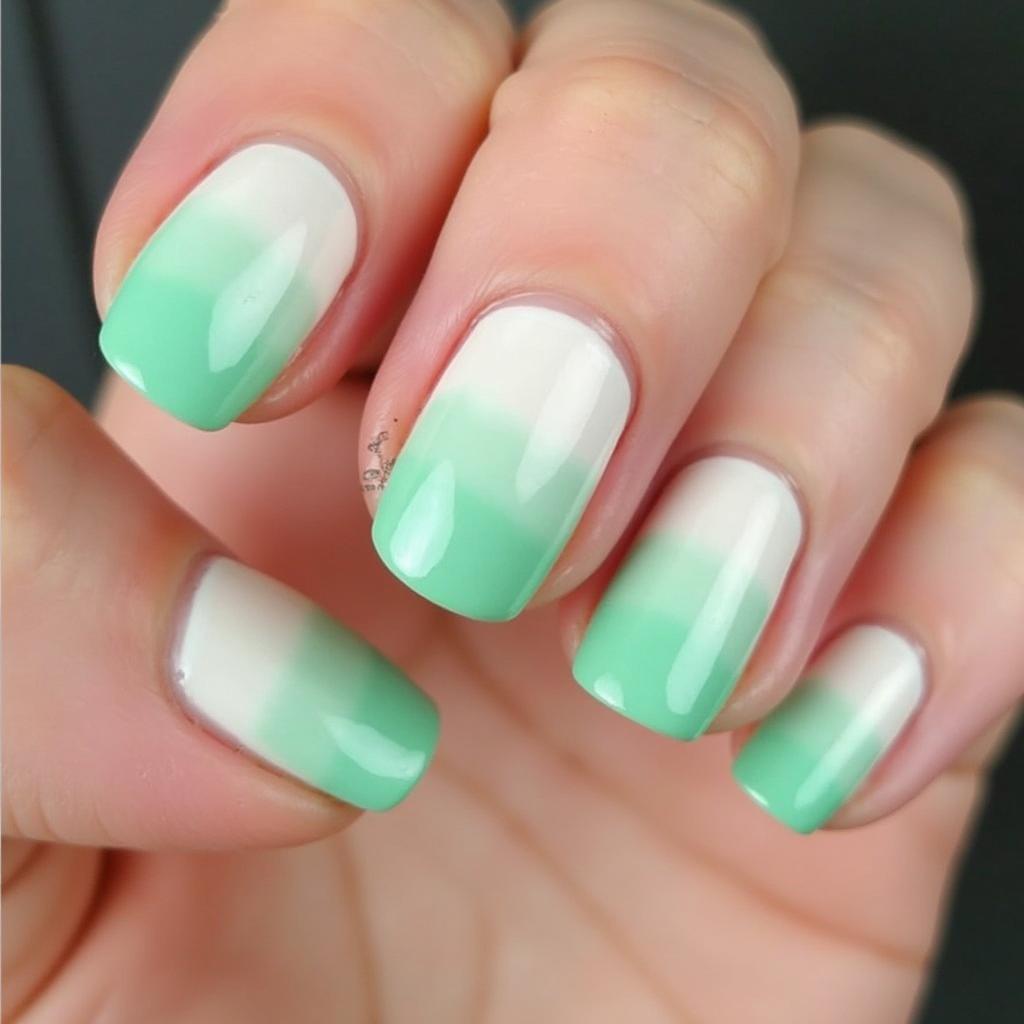 Switch up the design by using pastel green on the base of your nails and a neutral color on the tips for a fun, trendy look.