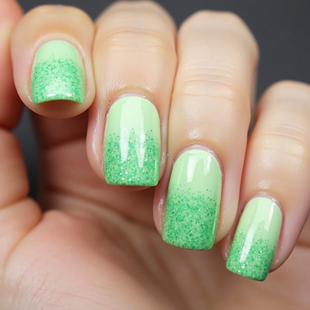 Start with a soft pastel green at the tips and gradually blend it into a deeper green at the base for an elegant ombre effect.