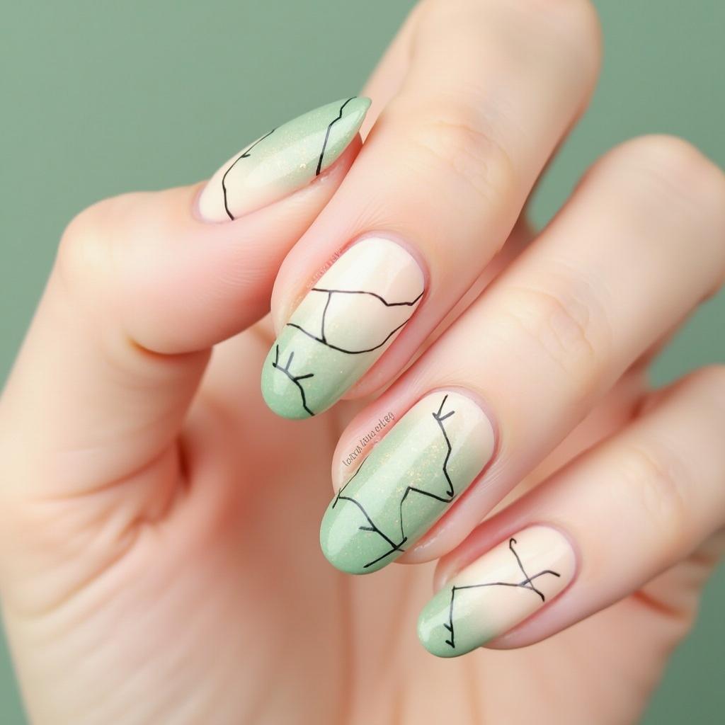 Create delicate marble swirls with light green and white, giving your nails a soft and elegant marble effect.