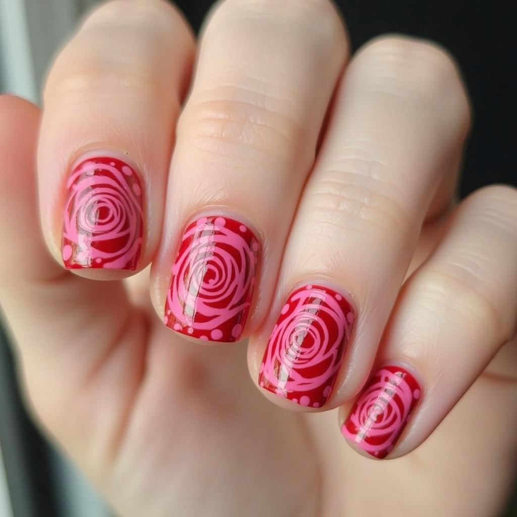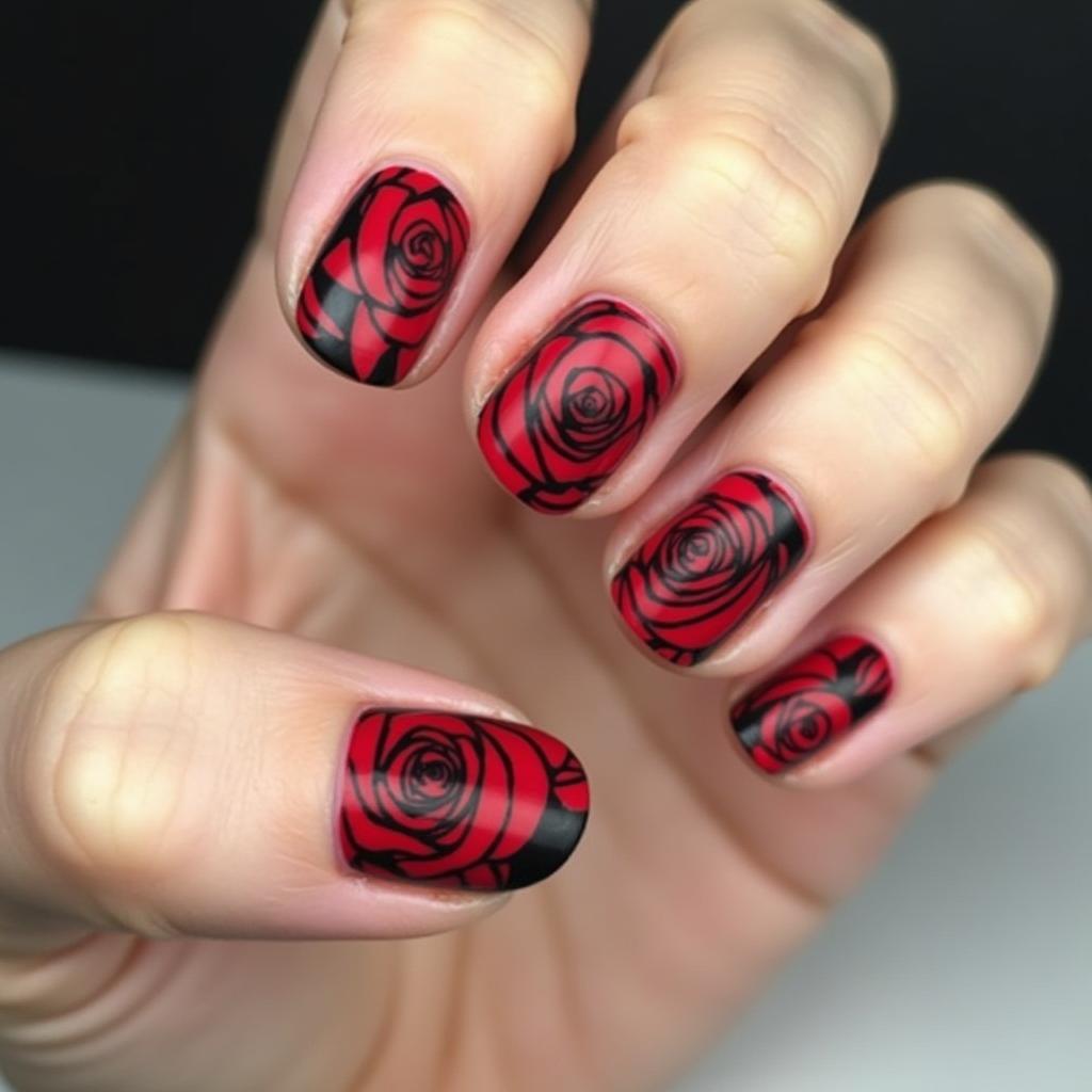 2. Bold Rose Nail Art