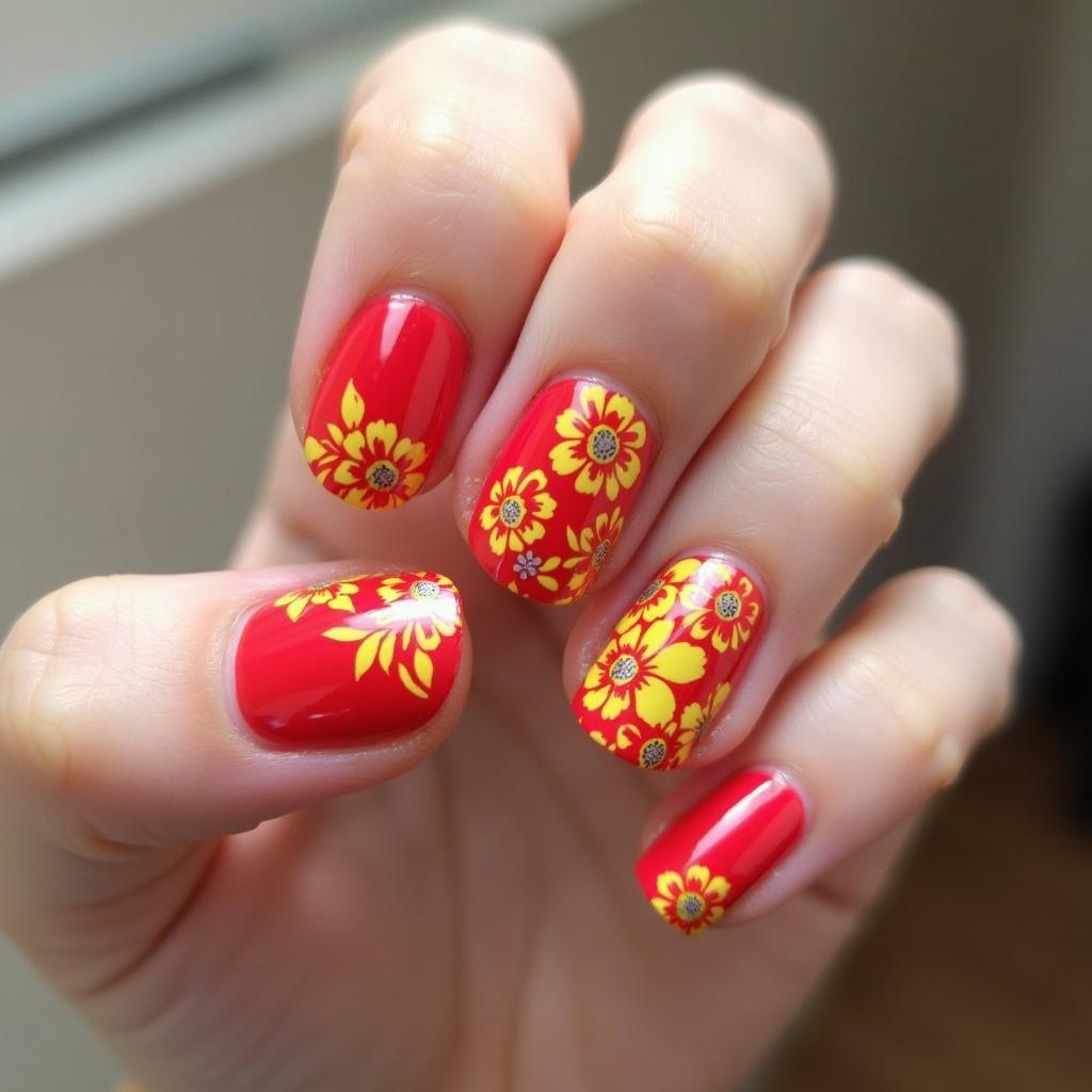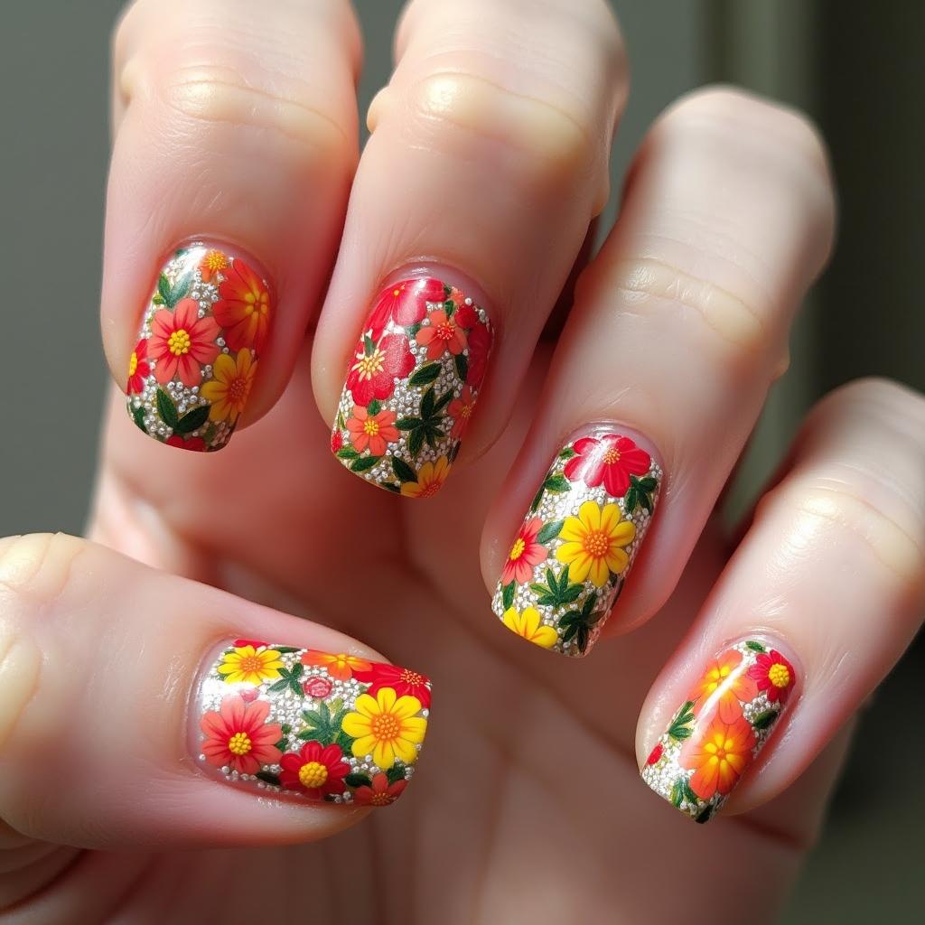 14. Bold and Bright Floral Nails