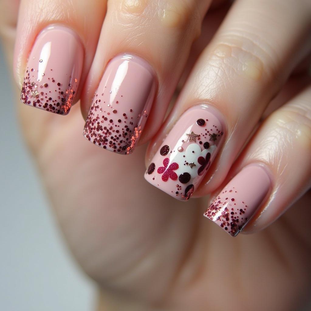 Add a little sparkle to your floral nails with a glittery gradient effect.